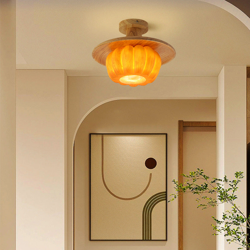 Contemporary Creative Resin Pumpkin PE Shade 1-Light Semi-Flush Mount Ceiling Light For Living Room