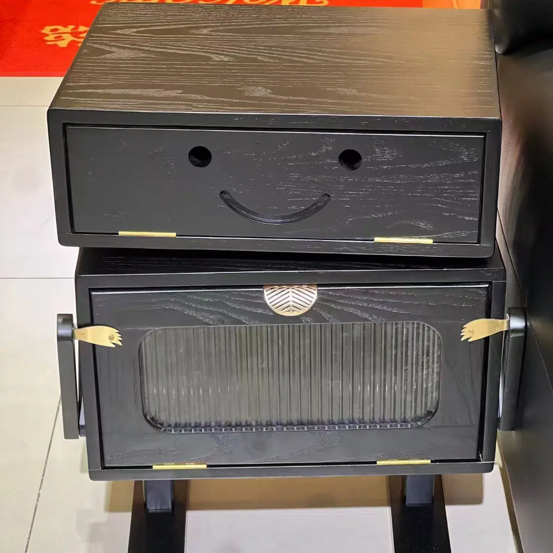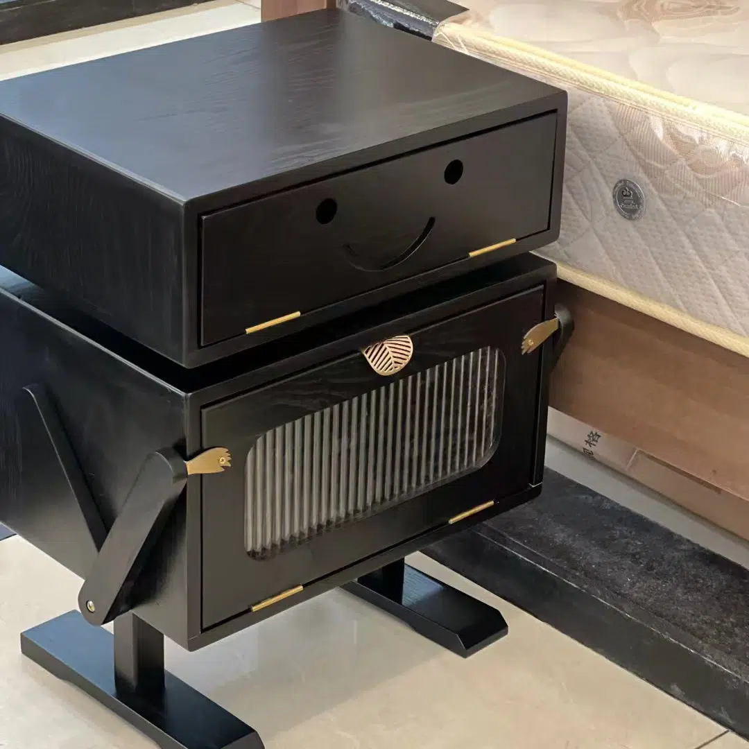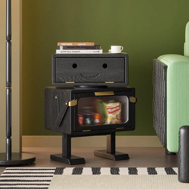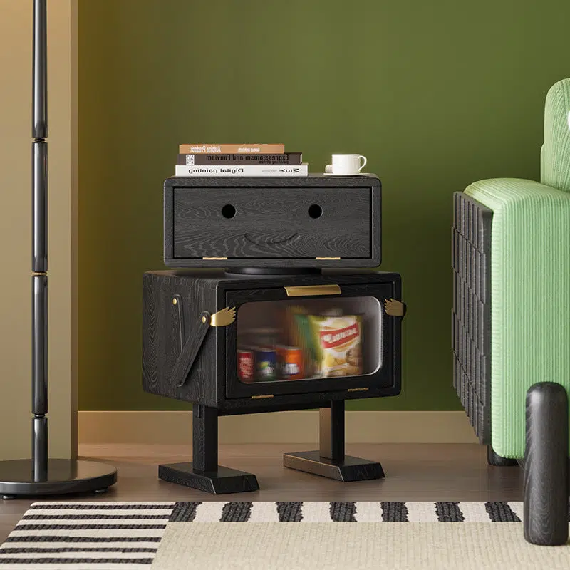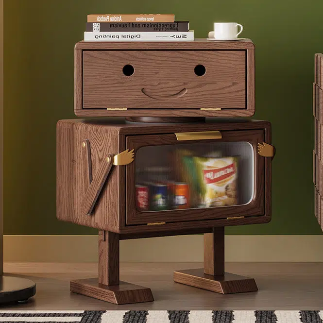 Contemporary Creative Robot Solid Wood Nightstand 2 Storage Cabinets For Bedroom