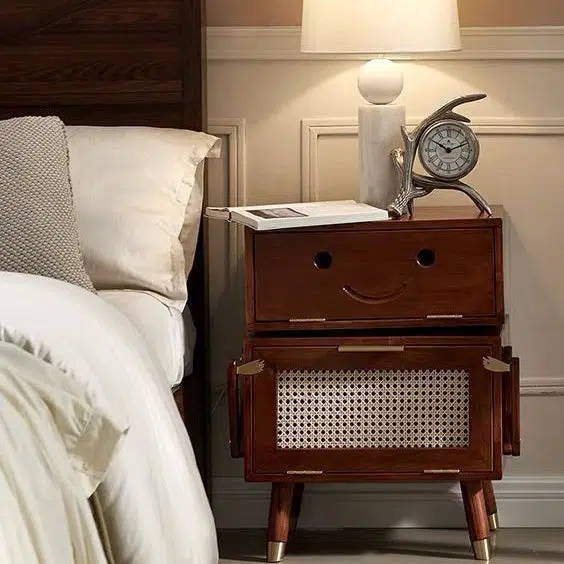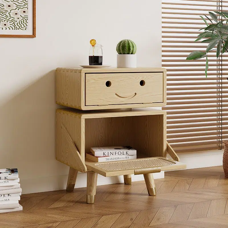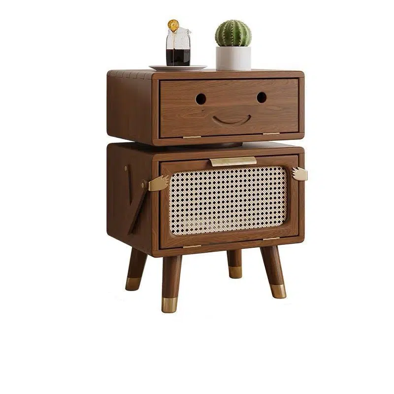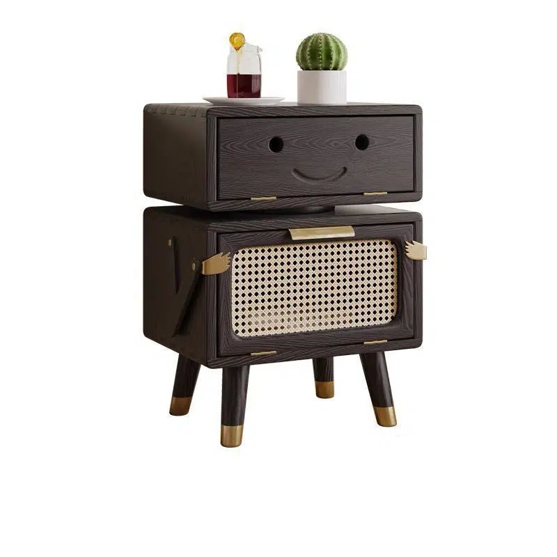 Contemporary Creative Rotatable Kids Robot Rectangular Cubic Ash Rattan Hardware Nightstand 2 – Cabinet For Bedroom