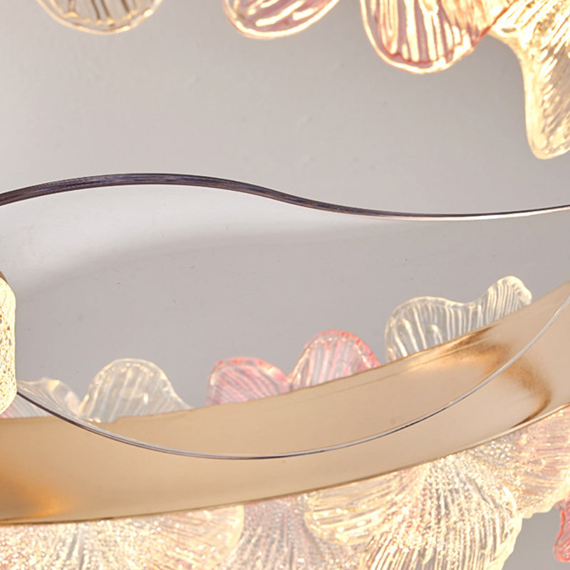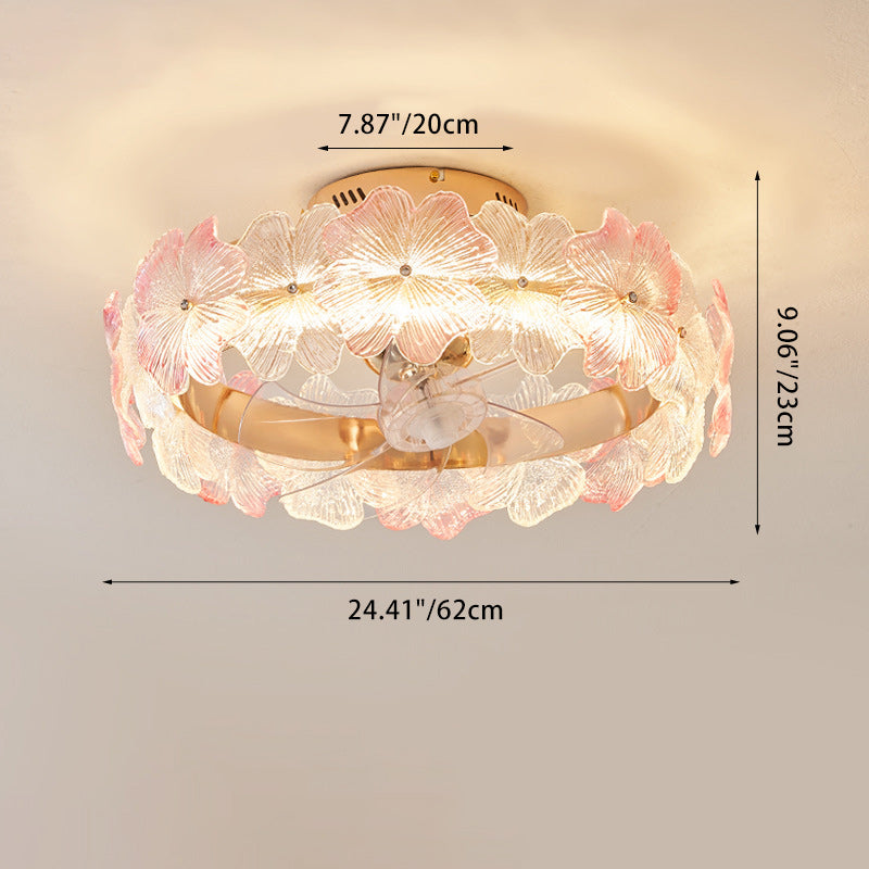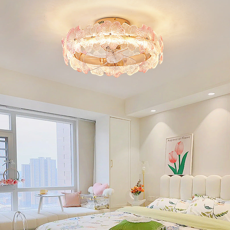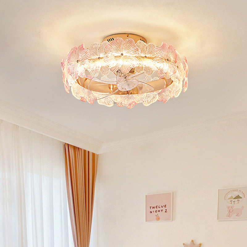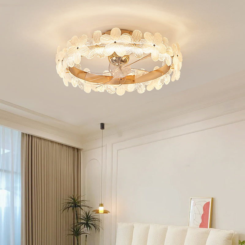 Contemporary Creative Round Circle Flower Hardware Glass ABS Fan Blade LED Semi-Flush Mount Ceiling Fan Light For Bedroom