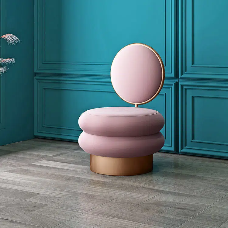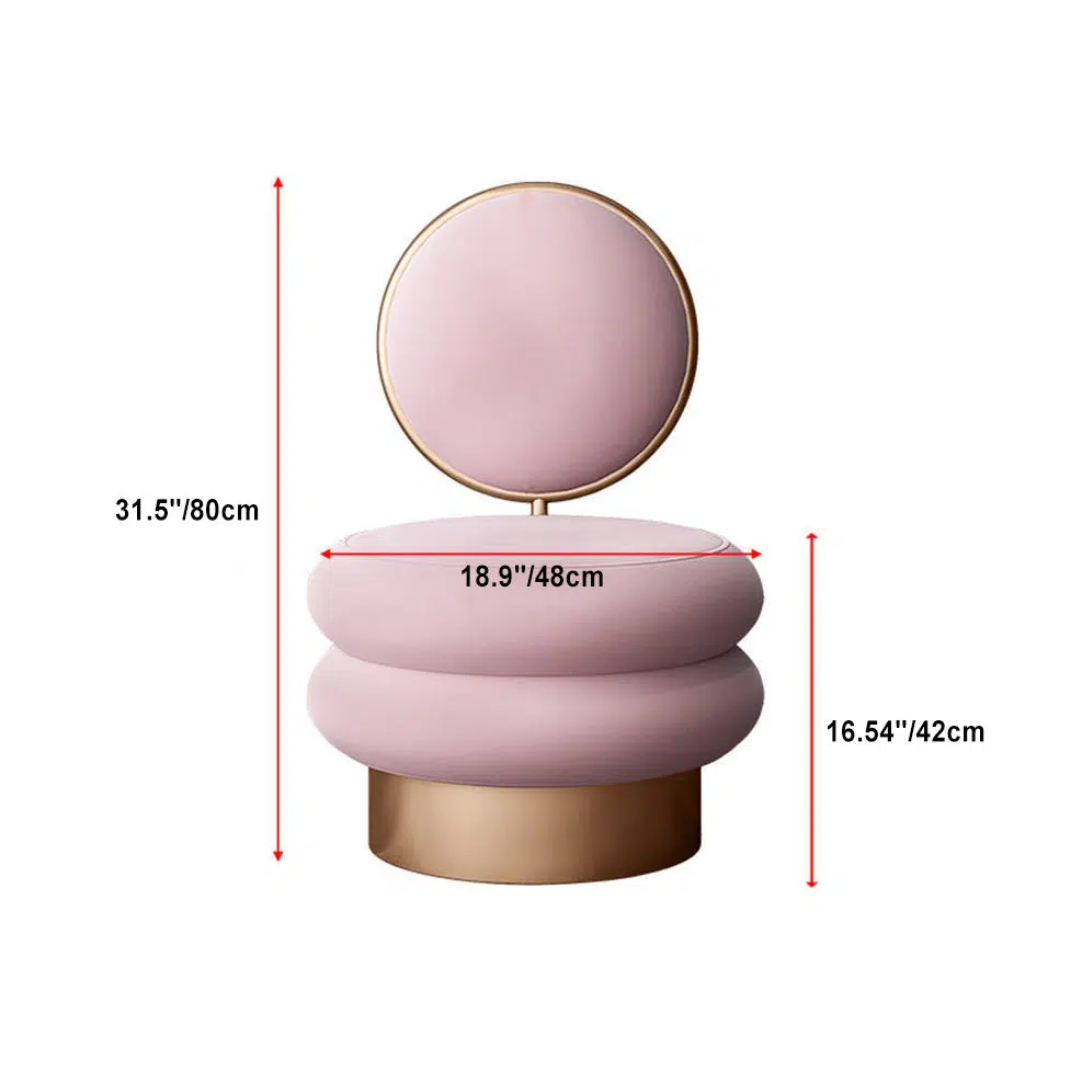 Contemporary Creative Round Fabric Iron Vanity Stool Backrest Armless For Bedroom