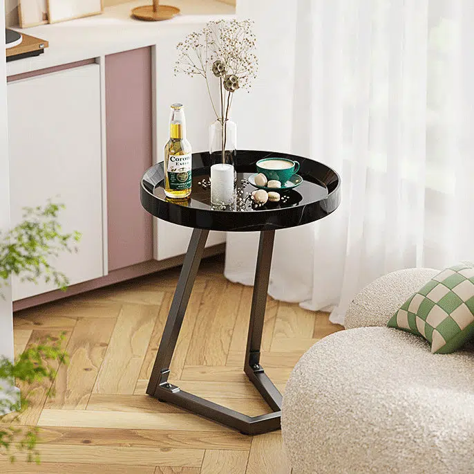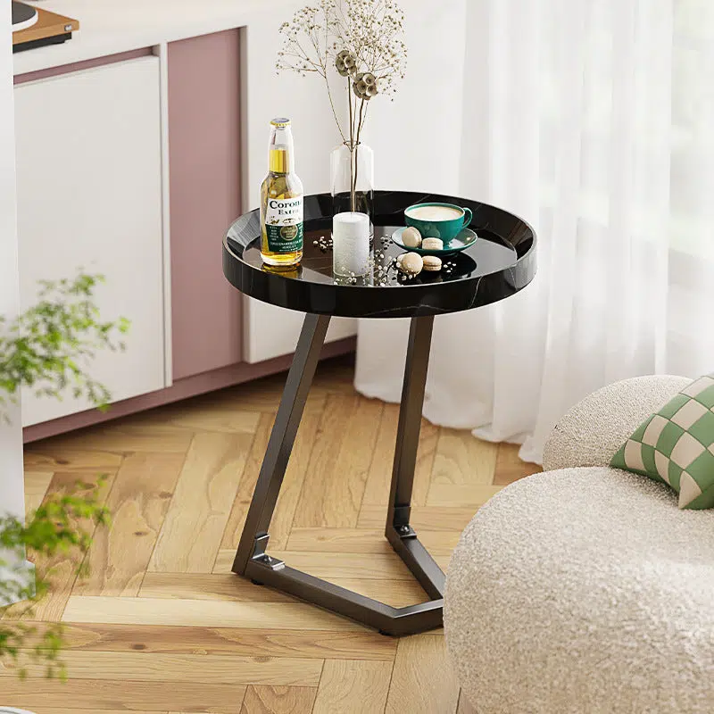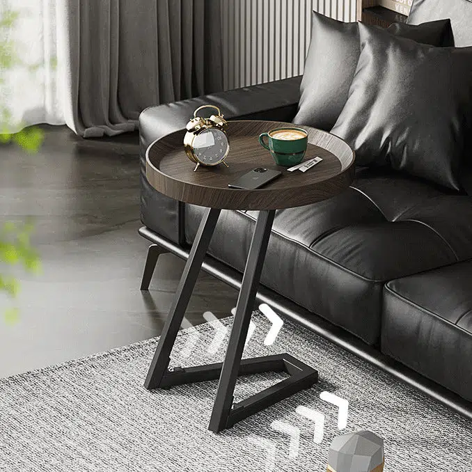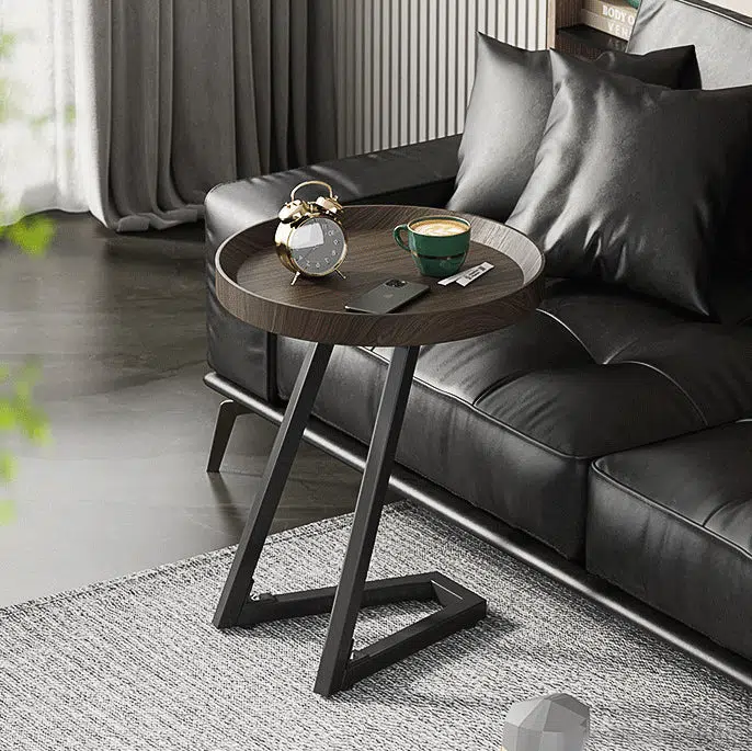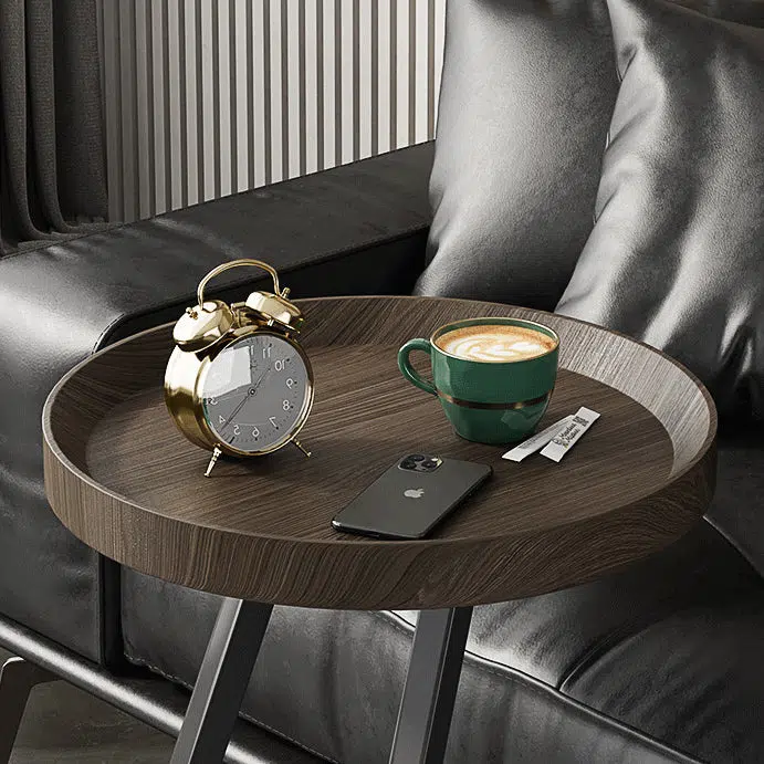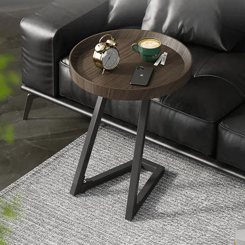 Contemporary Creative Round Solid Wood Stainless Steel Side Table For Living Room