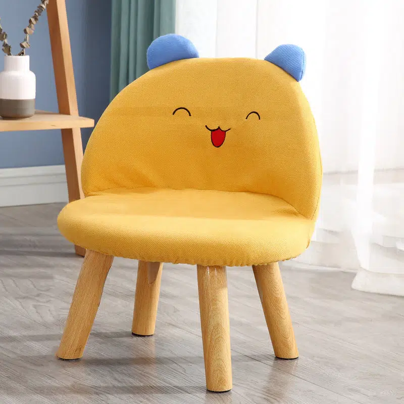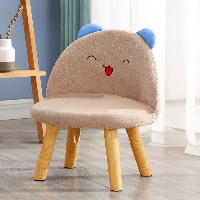Contemporary Creative Smiley Face Cotton Linen Childlike Low Stool Backrest For Living Room