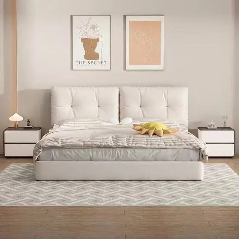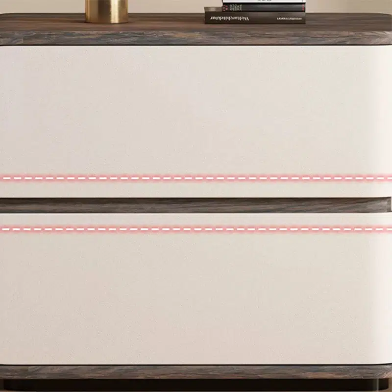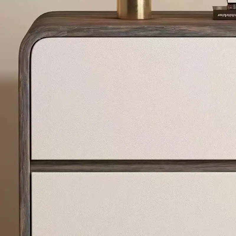Contemporary Creative Solid Wood Faux Leather Curved Square Nightstand 2-Drawer For Bedroom