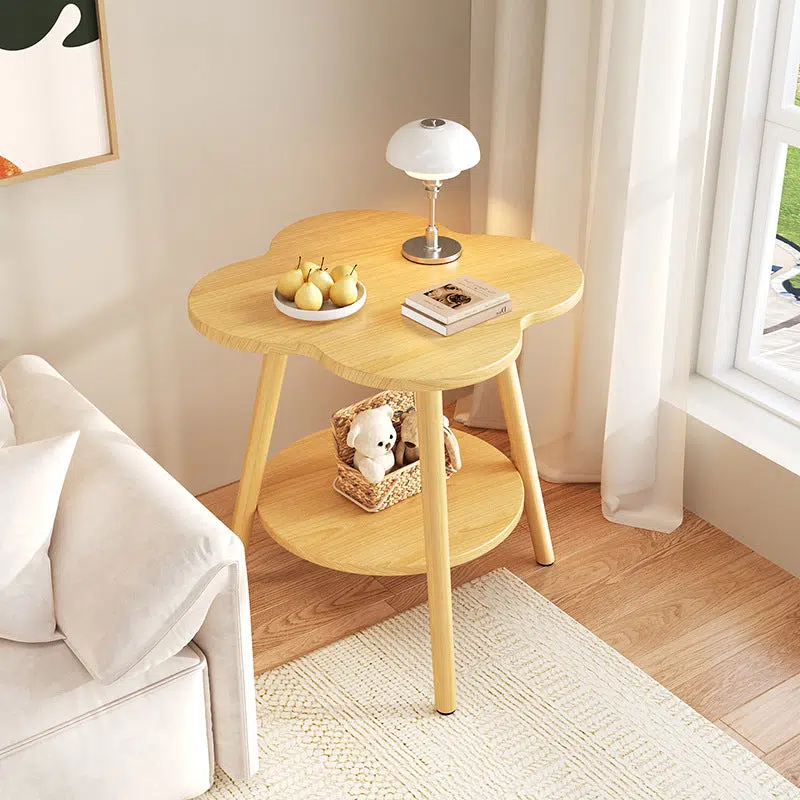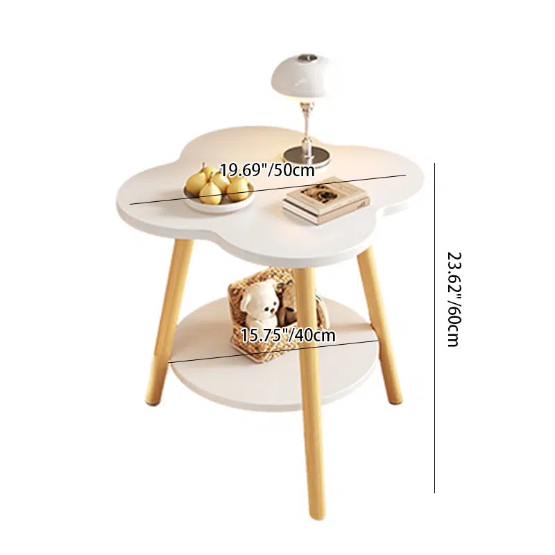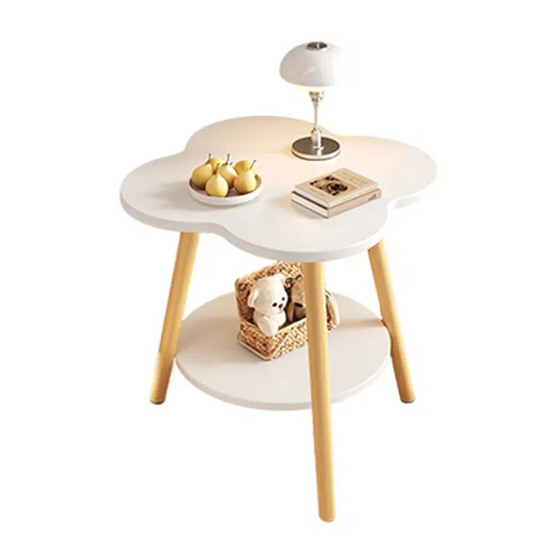 This 2-tier flower-shaped side table combines white and natural wood tones with a rounded edge design that prevents bumps. making it both stylish and safe. Crafted from engineered wood and metal. it’s a perfect space-saving end table for modern living rooms.