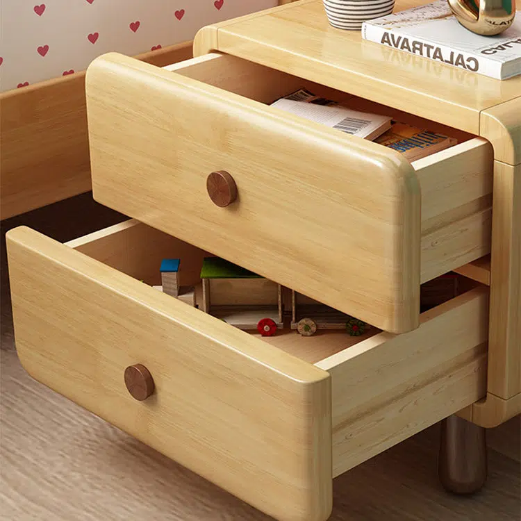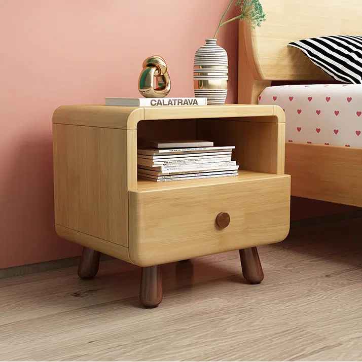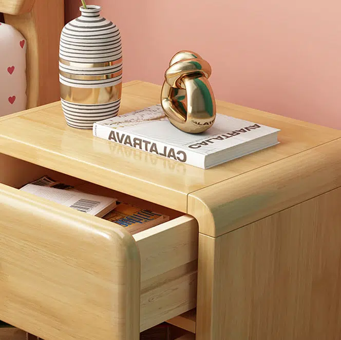 Crafted from natural solid wood. this contemporary nightstand features a rounded cylinder and soft-edged square design perfect for kids’ or teens’ bedrooms. With 1 or 2 drawers and clear wood grain. it adds warmth. storage. and charm in a natural wood finish.