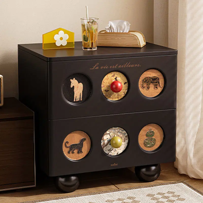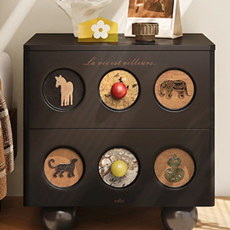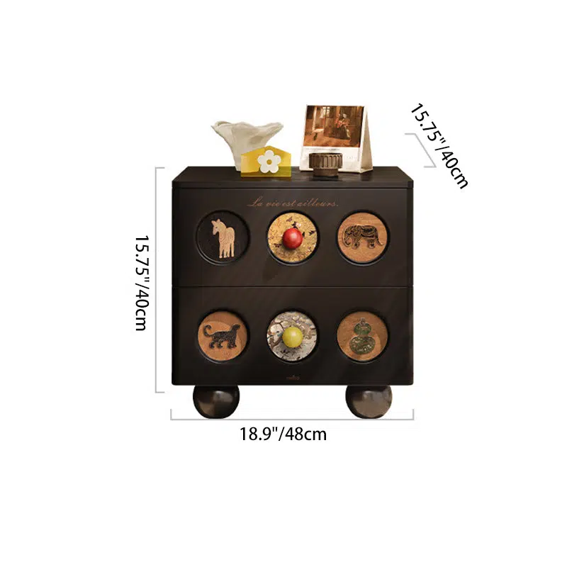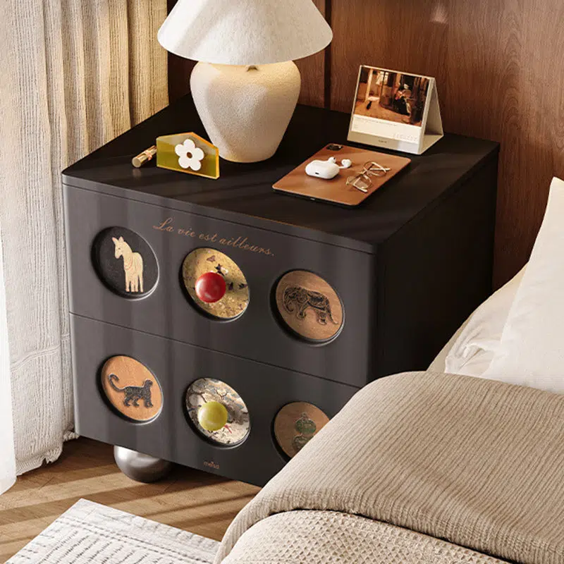 Contemporary Creative Square Cube Animal Prints Orb Solid Wood Hardware Nightstand 2 – Drawer For Bedroom