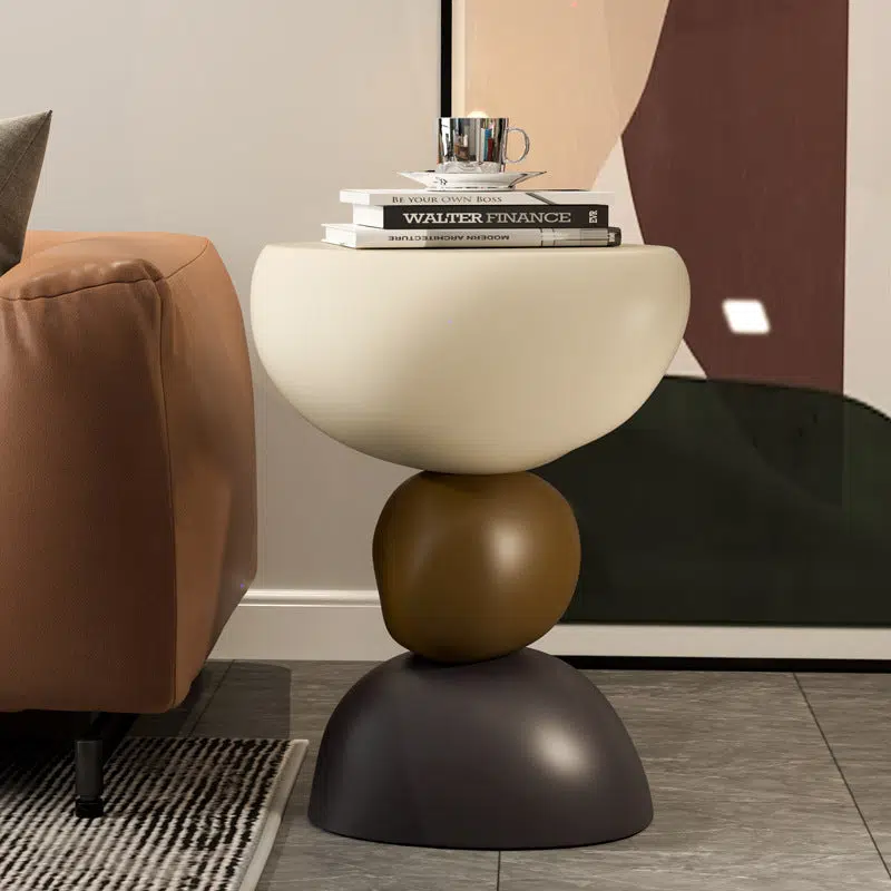 Contemporary Creative Stone Stacking Round Oval Fiberglass Side Table For Living Room