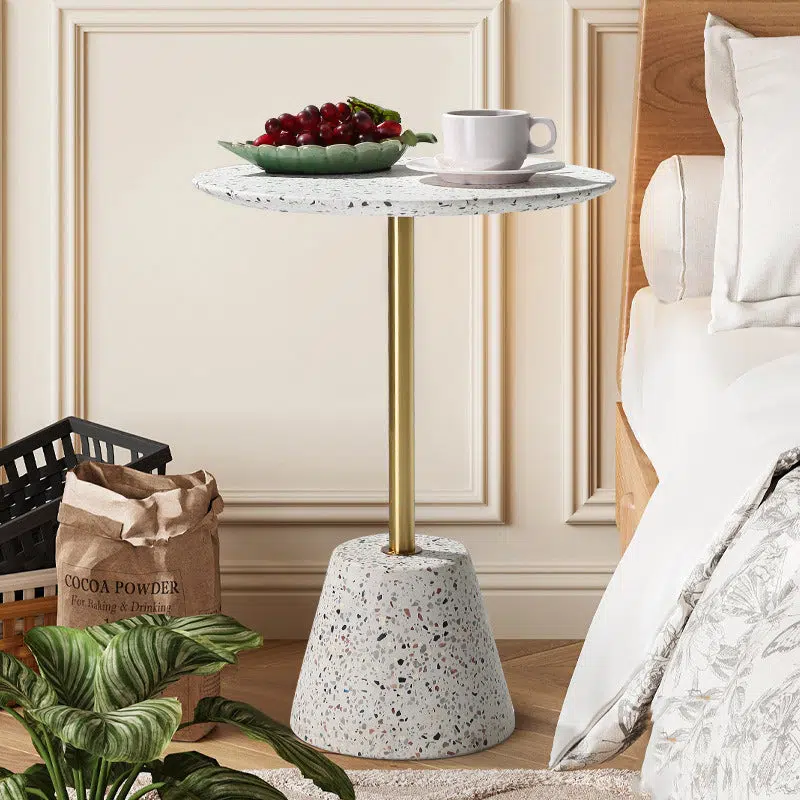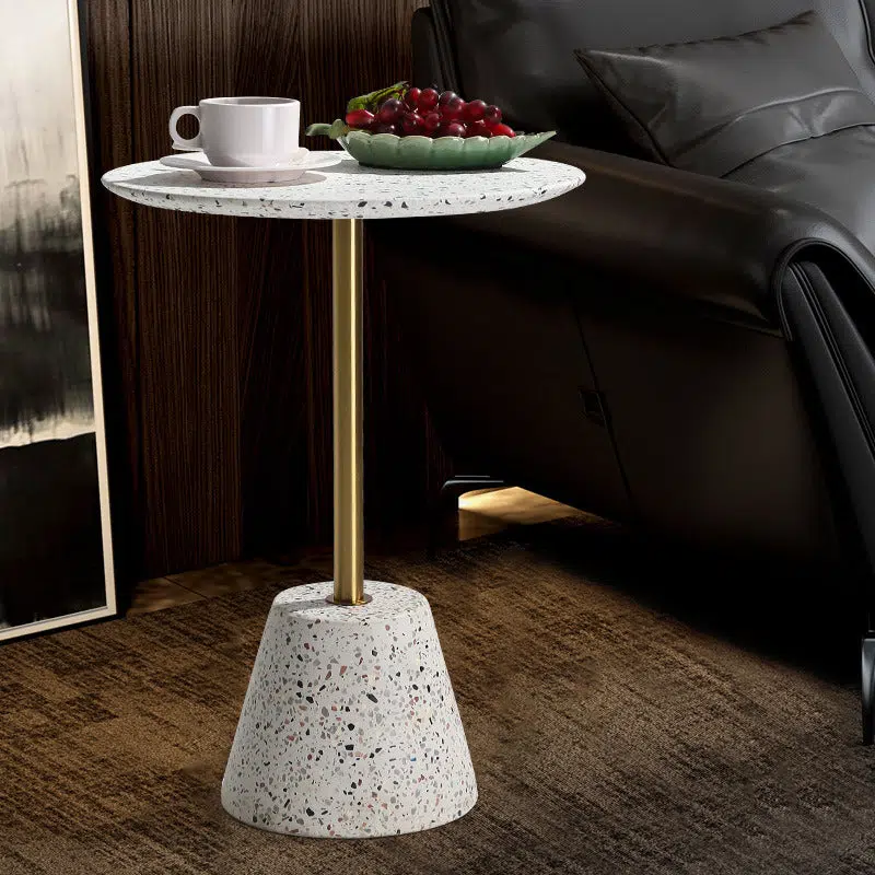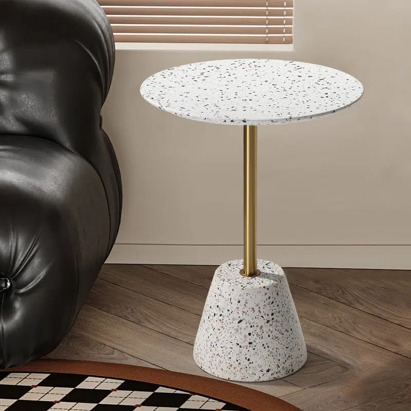 Contemporary Creative Terrazzo Metal Round End Table 1-Tier For Living Room