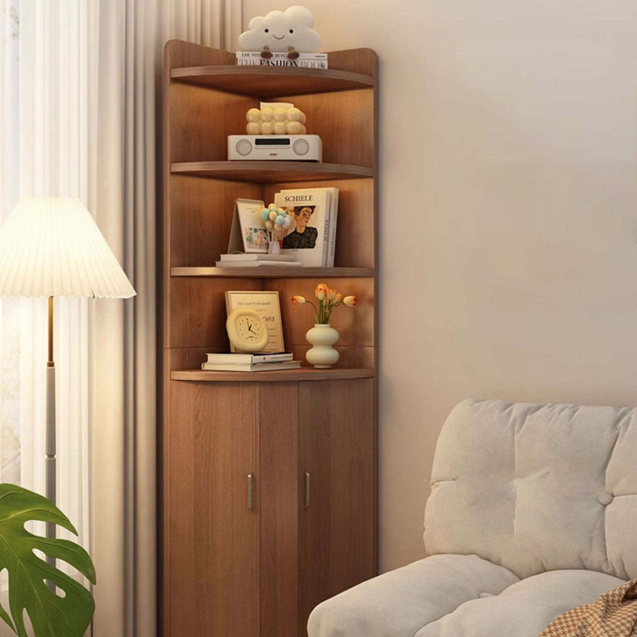 Contemporary Creative Triangle Solid Wood Bookshelves 4-Shelf For Bedroom