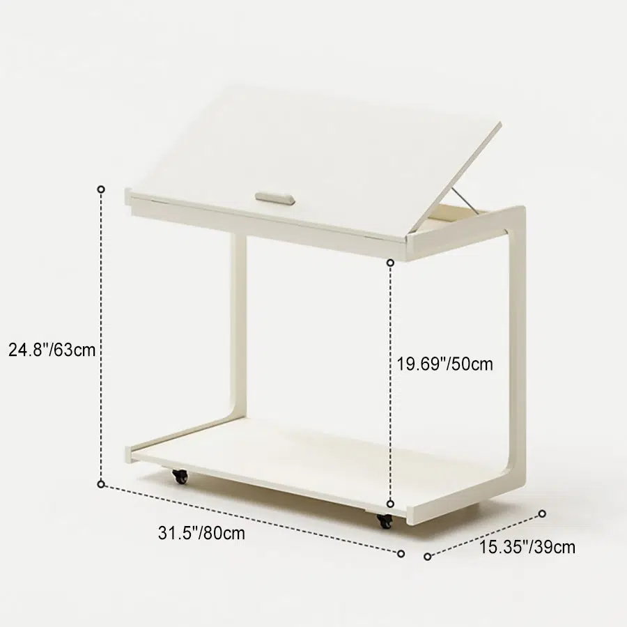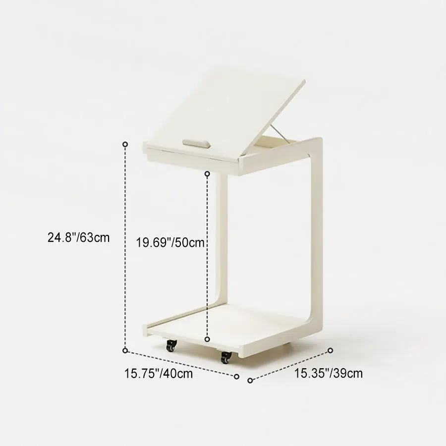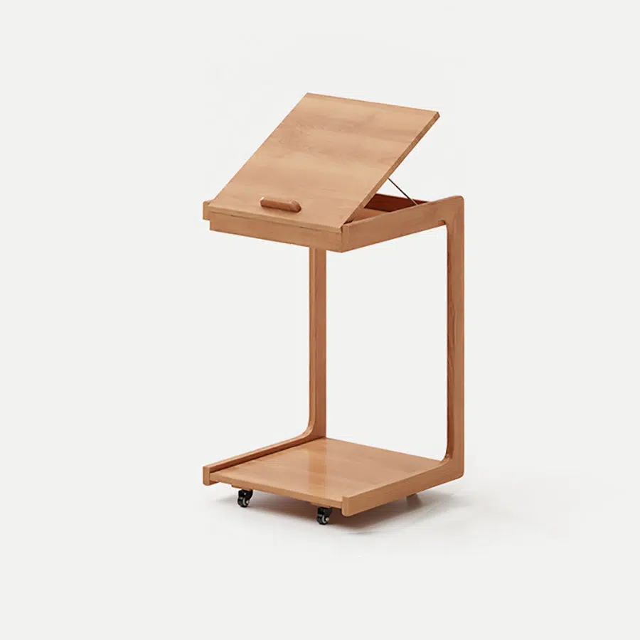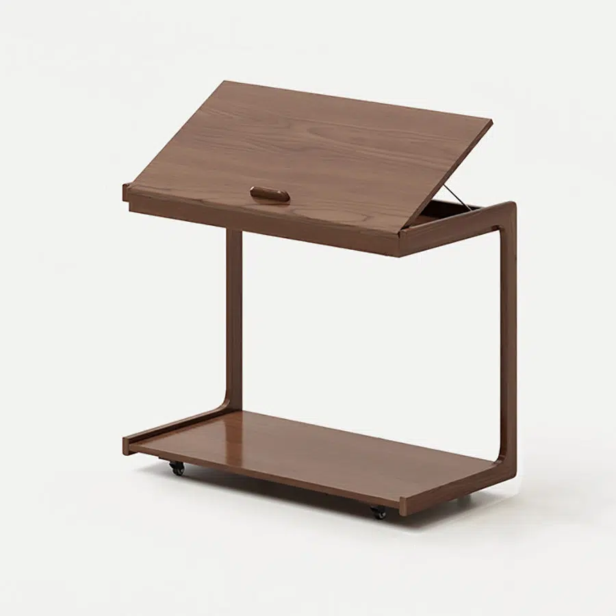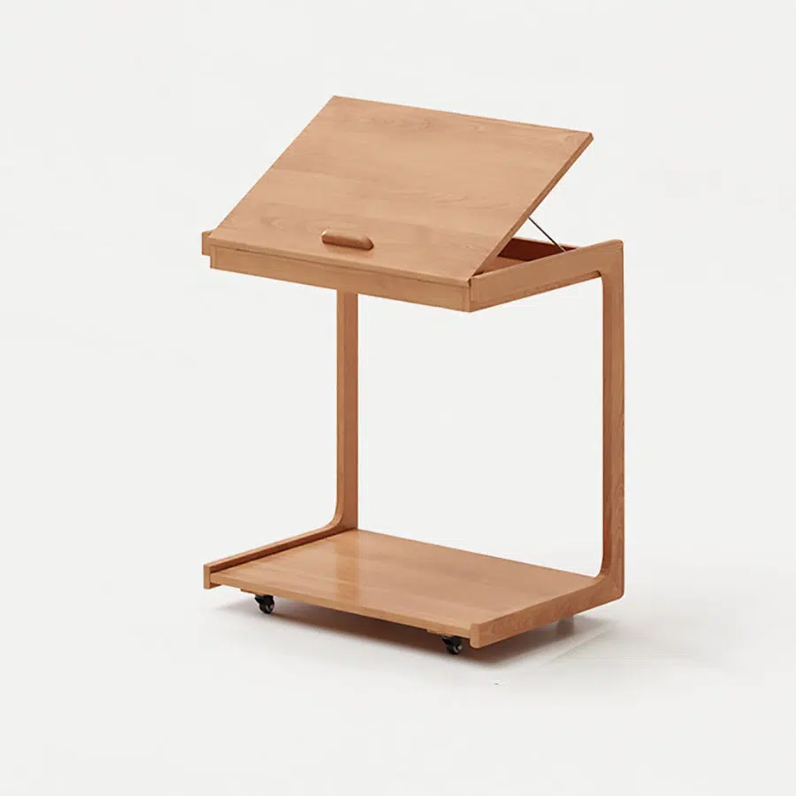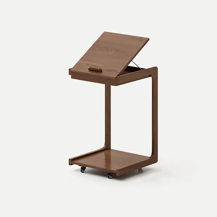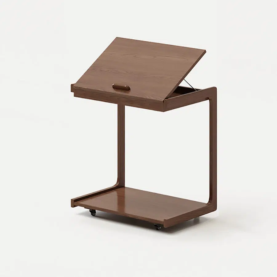 Contemporary Creative U-Shape Square Removable Tiltable Solid Wood End Table 2-Tiers For Living Room