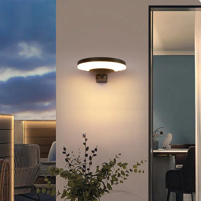 Contemporary Industrial Aluminum Disc Solar LED Wall Sconce Lamp For Outdoor Patio