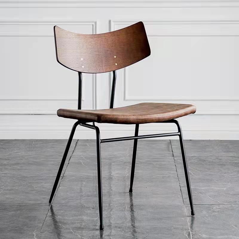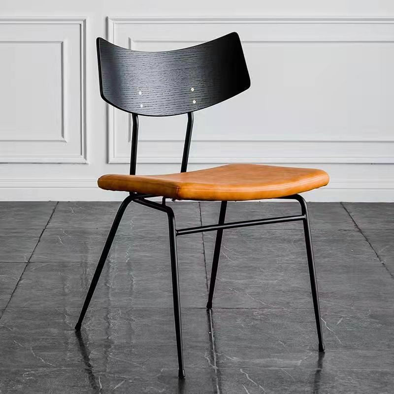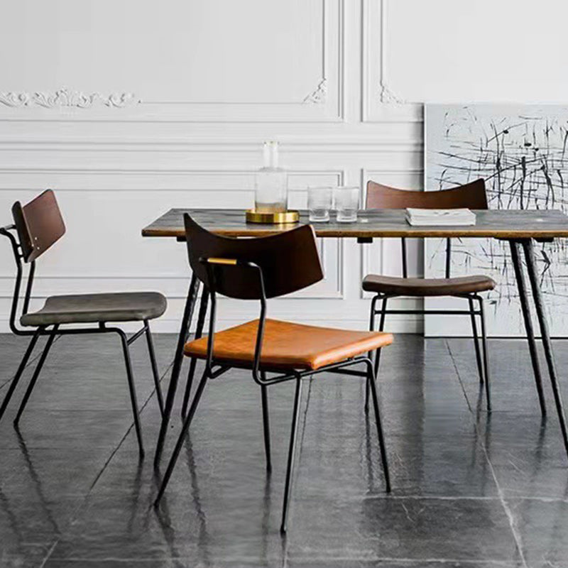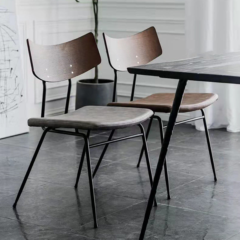 Contemporary Industrial Curved Square PU Leather Iron Dining Chair Backrest Armless For Dining Room