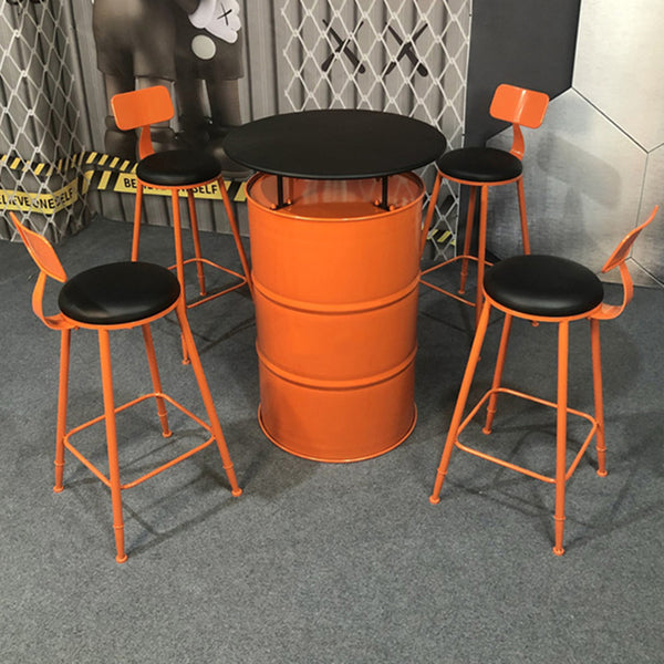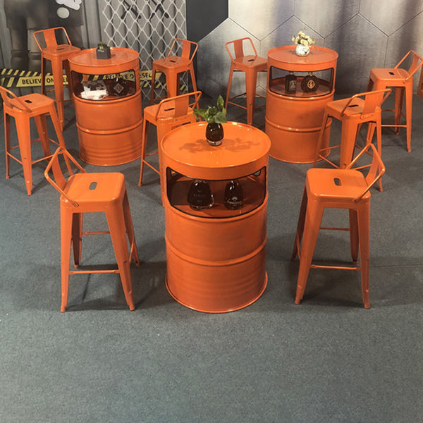 Add bold industrial flair to your space with this eye-catching orange iron cafe table set. featuring a unique drum-shaped. round table with hidden storage and seating for 2 or 4. Ideal for kitchens. living rooms. or commercial lounges. this creative furniture set blends durability with multifunctional design.