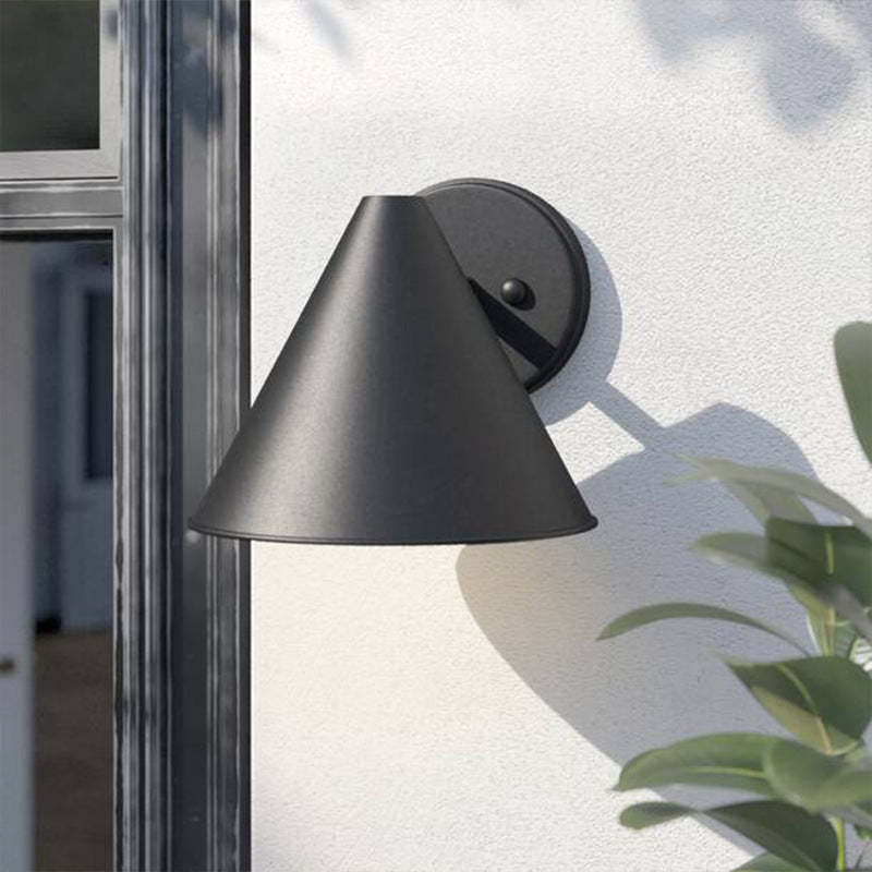Contemporary Industrial Iron Geometric Cone 1-Light Outdoor Waterproof Wall Sconce Lamp For Outdoor Patio