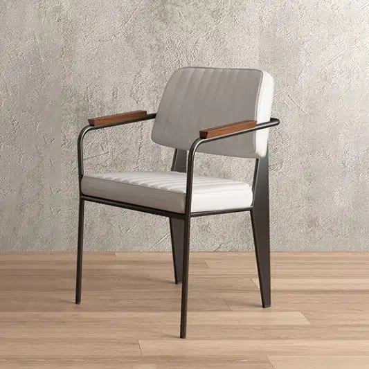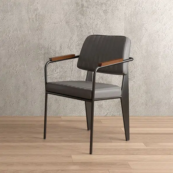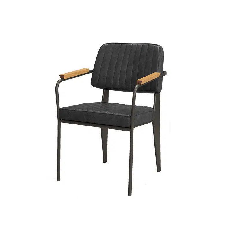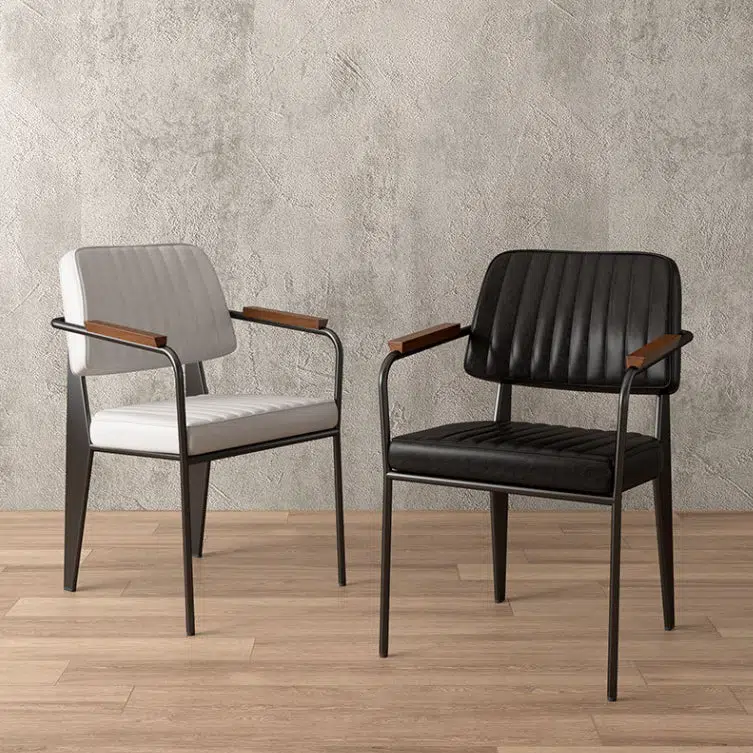 Contemporary Industrial Leather Metal Sponge Wood Square Vertical Stripe Dining Chair Backrest Armrest For Dining Room