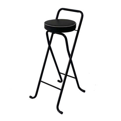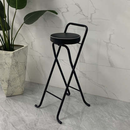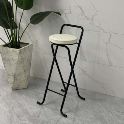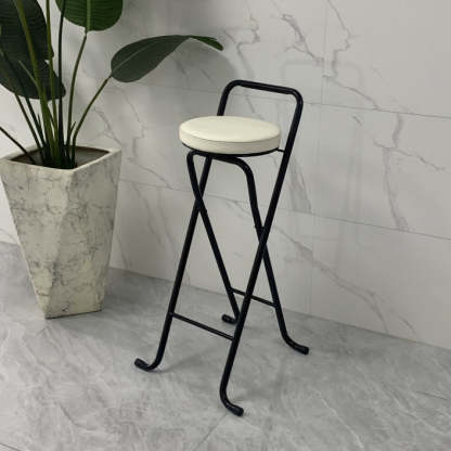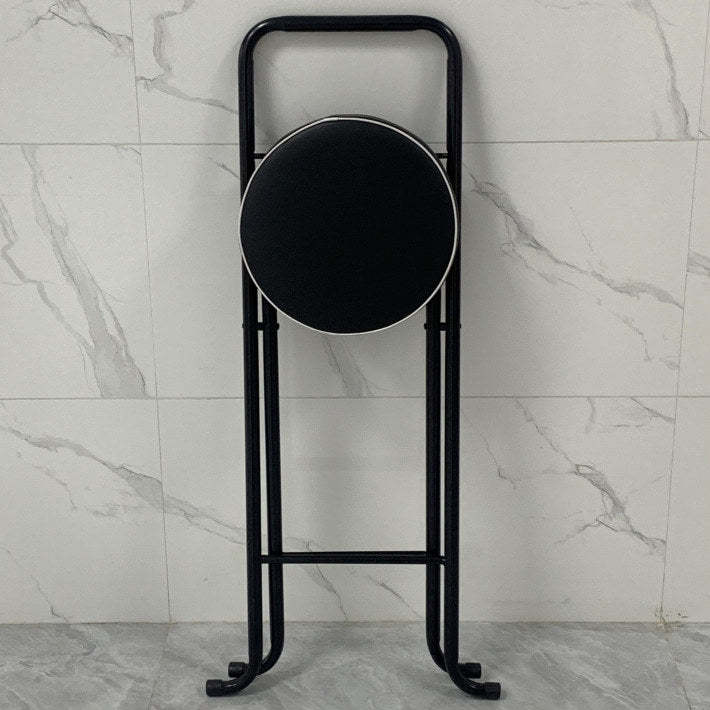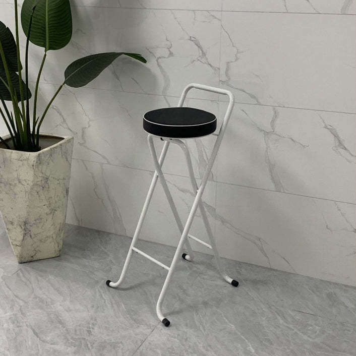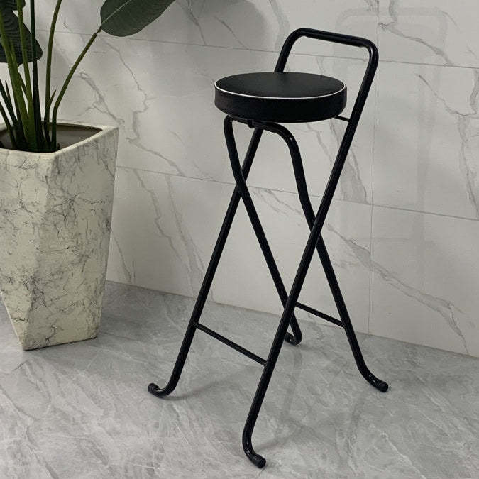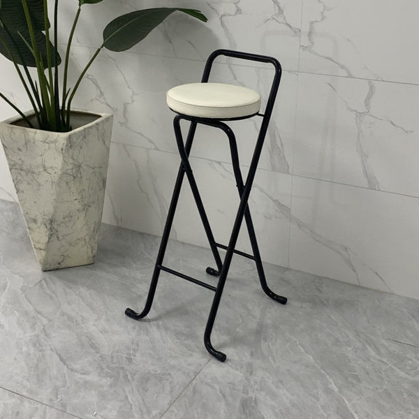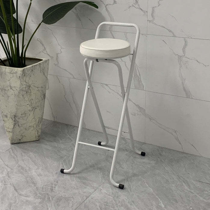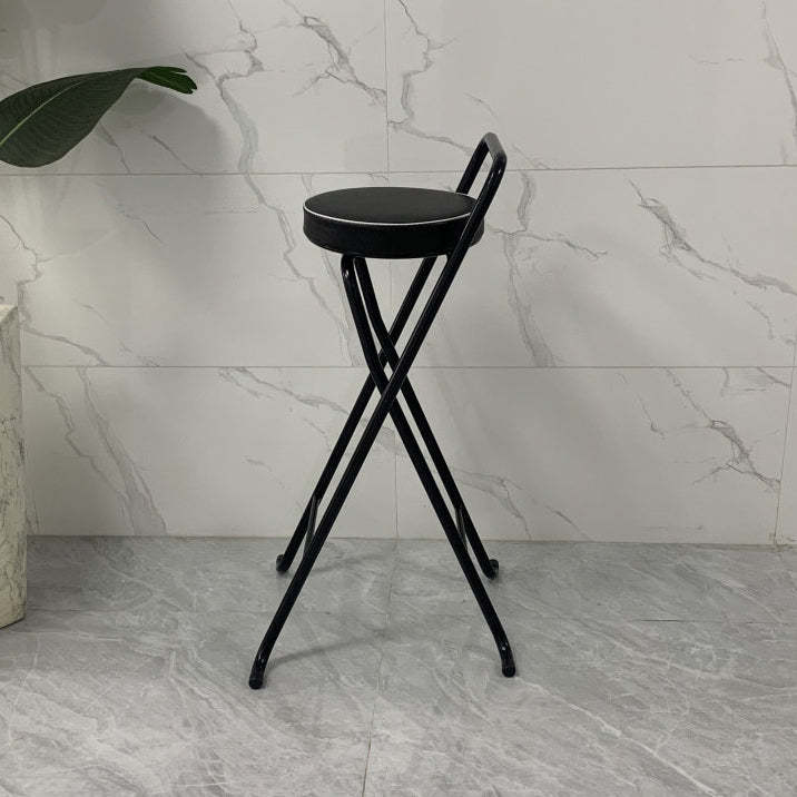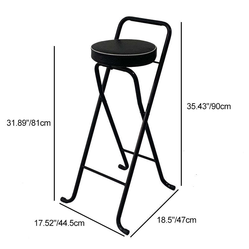 Contemporary Industrial Round PU Leather Iron Tube Foldable Bar Stool Low Back Footrest For Dining Room