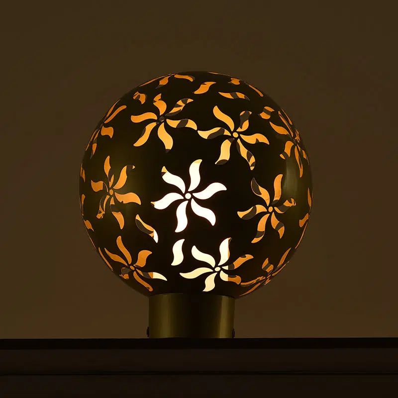 Contemporary Industrial Solar Stainless Steel Carved Sphere 1-Light Post Light Lawn Landscape Light For Outdoor Patio