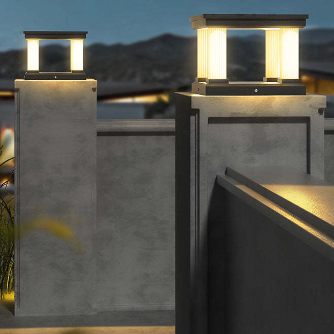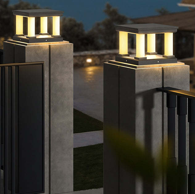Contemporary Industrial Stainless Steel Square Column LED Waterproof Solar Post Lamp For Outdoor Patio