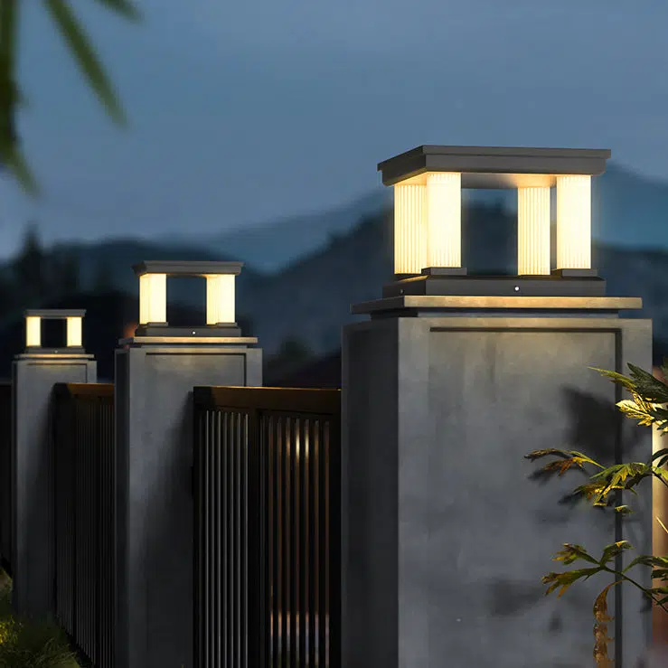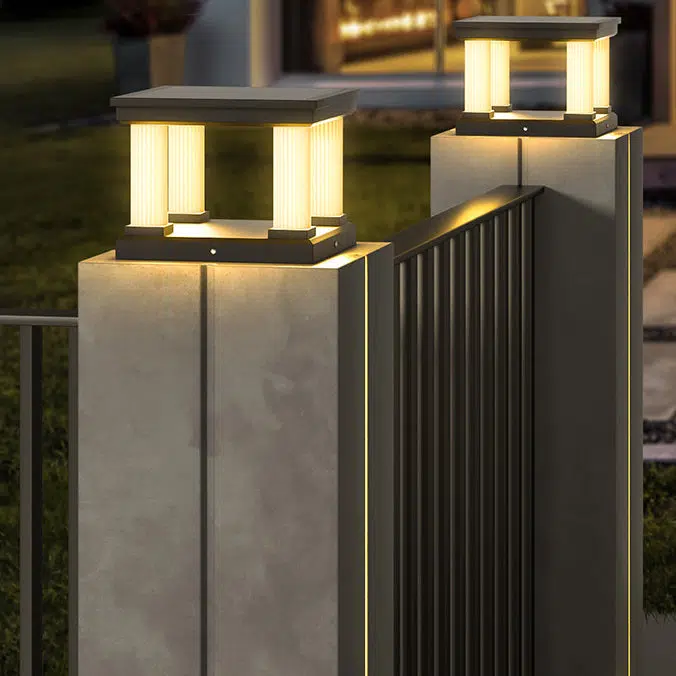 Contemporary Industrial Stainless Steel Square Column LED Waterproof Solar Post Lamp For Outdoor Patio