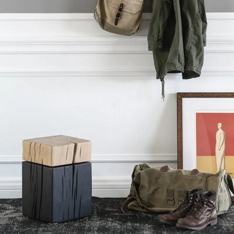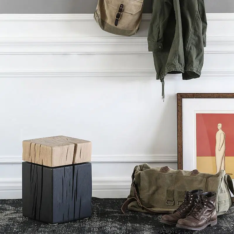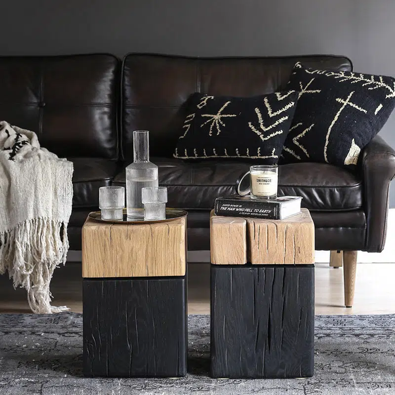 Contemporary Japanese Cuboid Crack Design Solid Wood End Table For Living Room