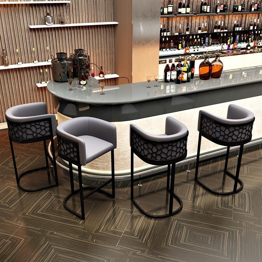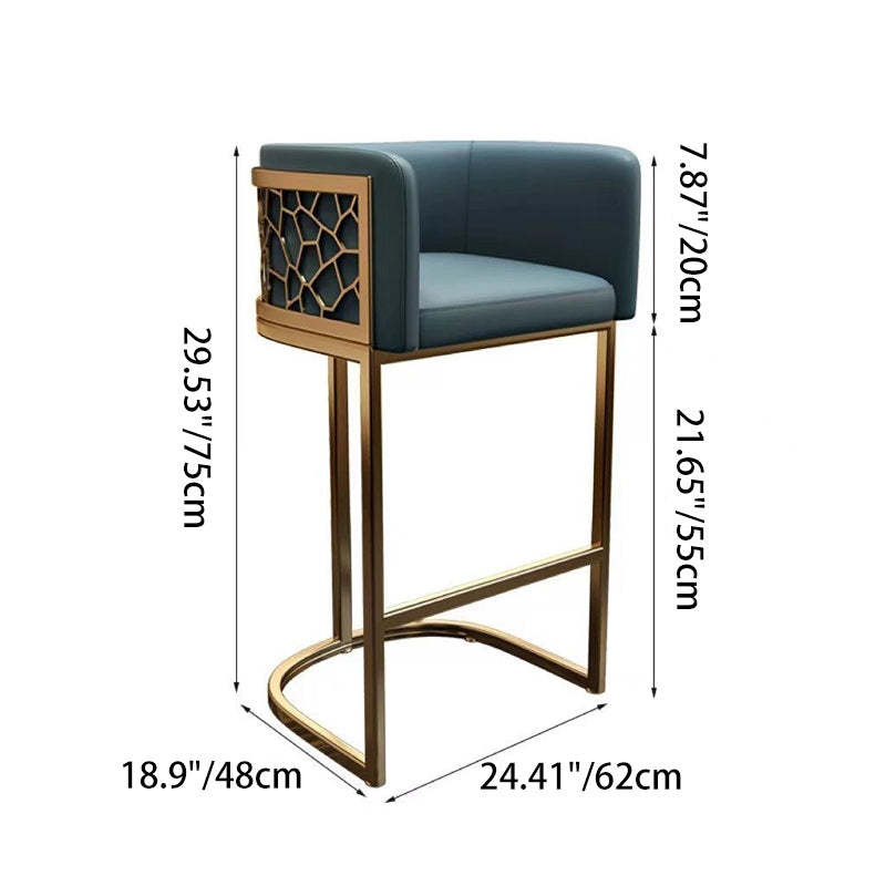 Contemporary Luxury Arc Leather Upholstered Metal Bar Stool Backrest Footrest For Dining Room