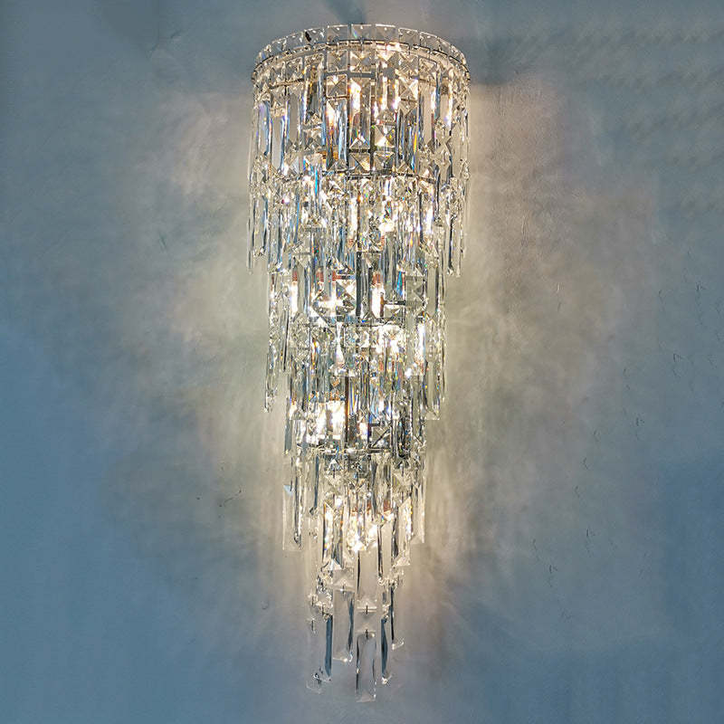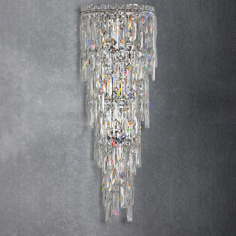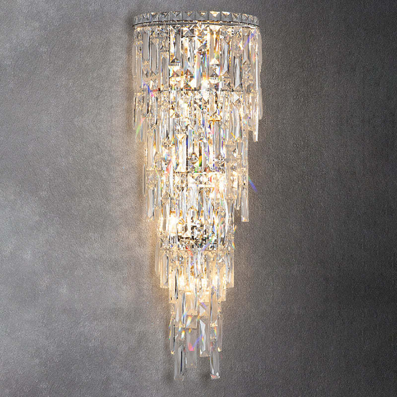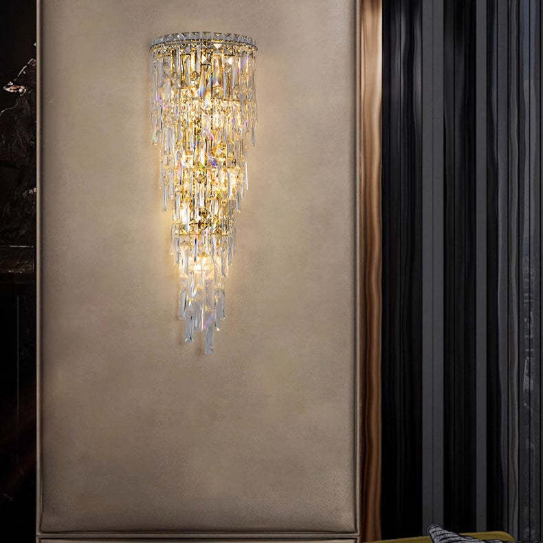 Contemporary Luxury Crystal Tassel Half Post 1-Light Wall Sconce Lamp For Living Room