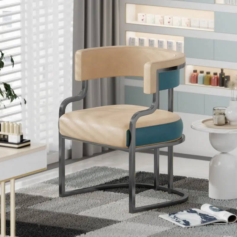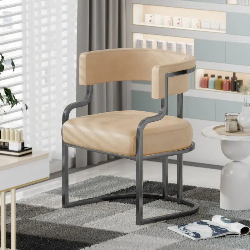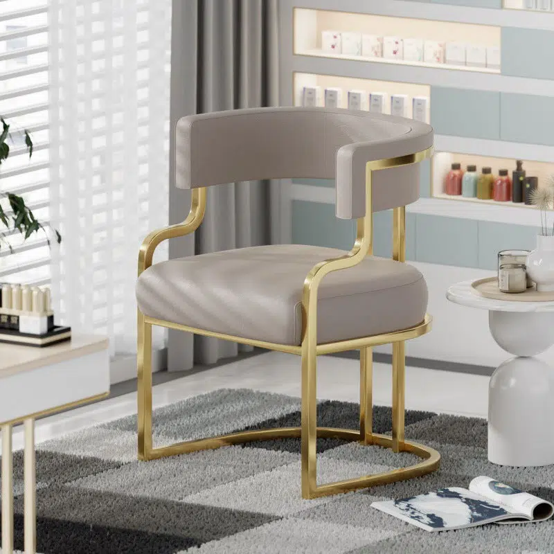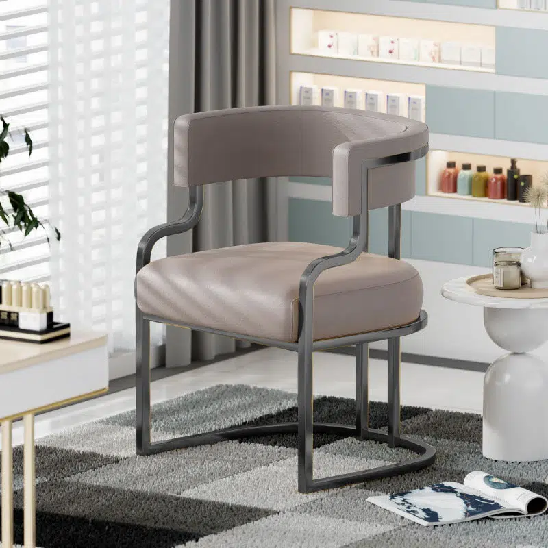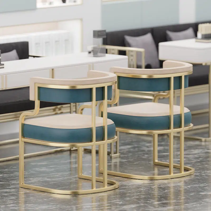 Contemporary Luxury Curved Microfiber Leather Upholstered Metal Frame Dining Chair Backrest For Dining Room