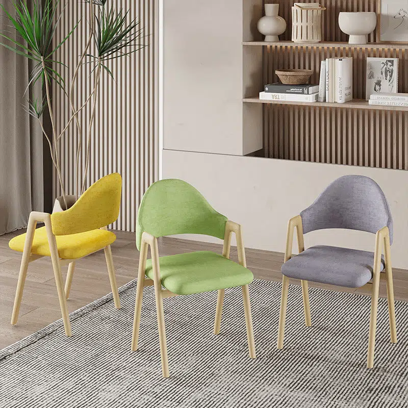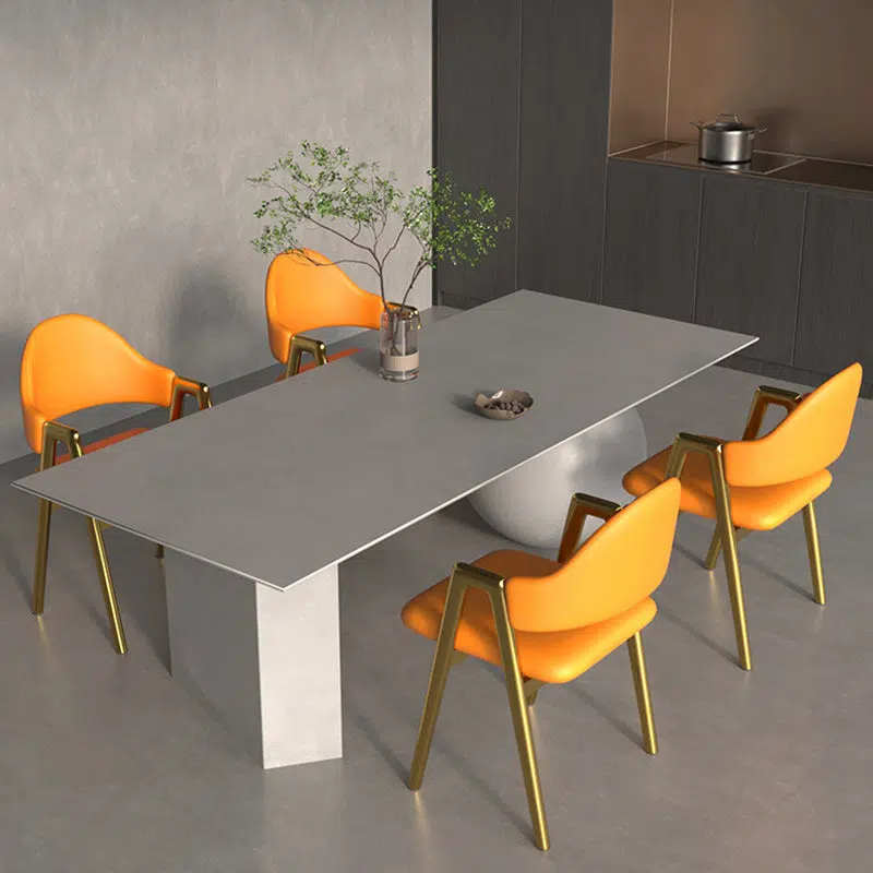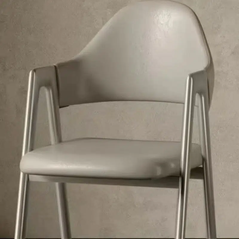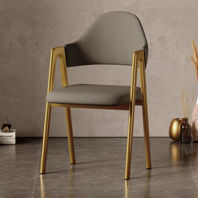 Contemporary Luxury Curved Pana Leather Linen Upholstered Metal Dining Chair Backrest Armrest For Dining Room