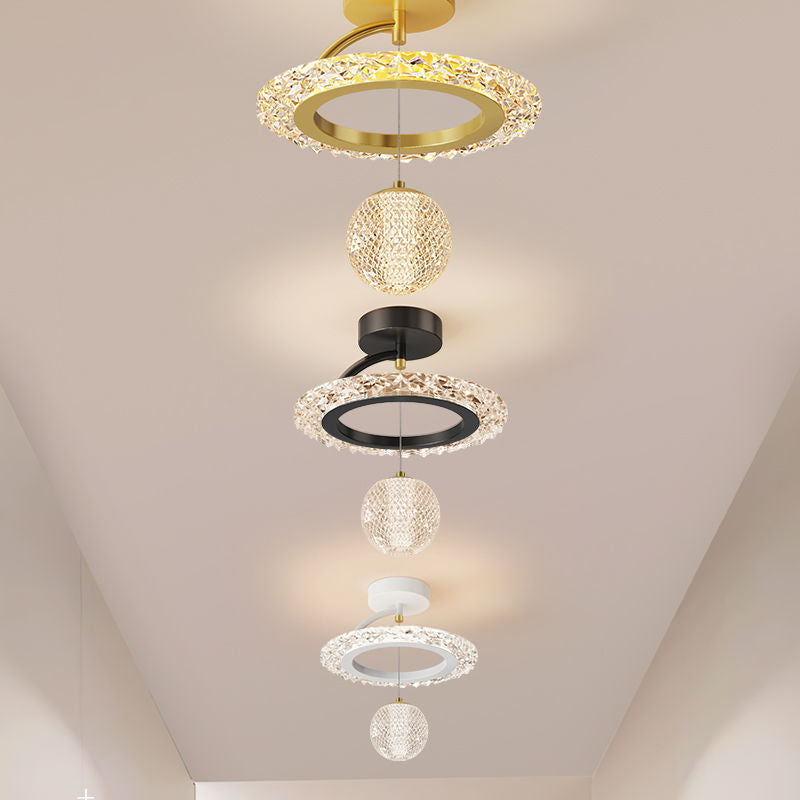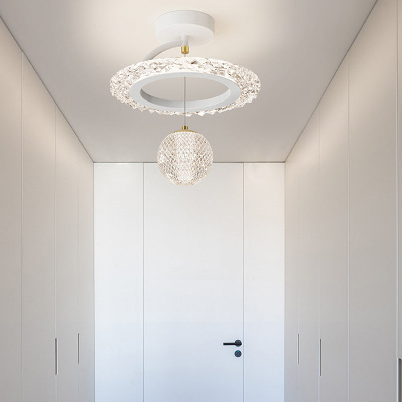 Contemporary Luxury Iron Acrylic Geometric Circle Ring LED Semi-Flush Mount Ceiling Light For Living Room