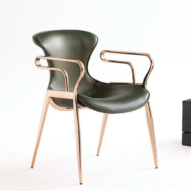 Contemporary Luxury Leather Carbon Steel Frame Dining Chair Backrest Armrest For Dining Room