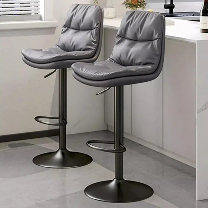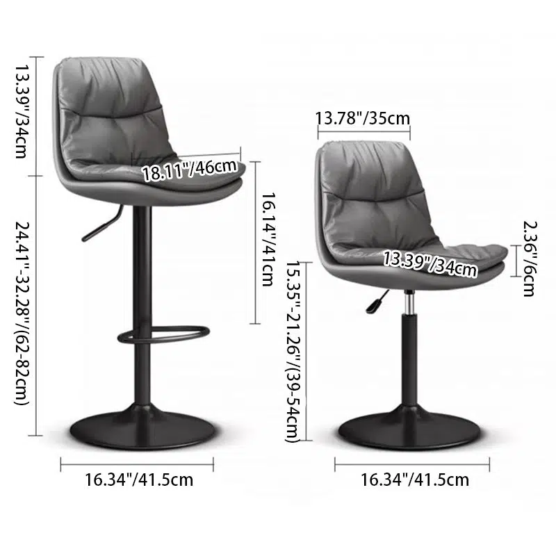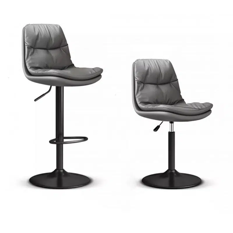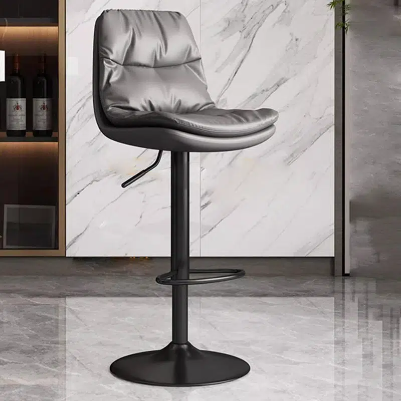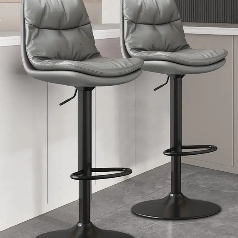 Contemporary Luxury Leather Upholstered Round Metal Base Height Adjustable Swivel Bar Stool Footrest For Dining Room