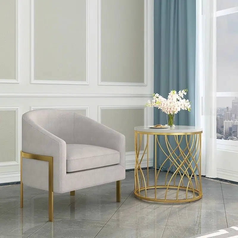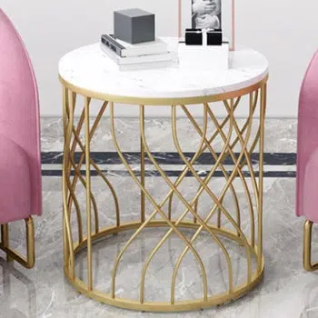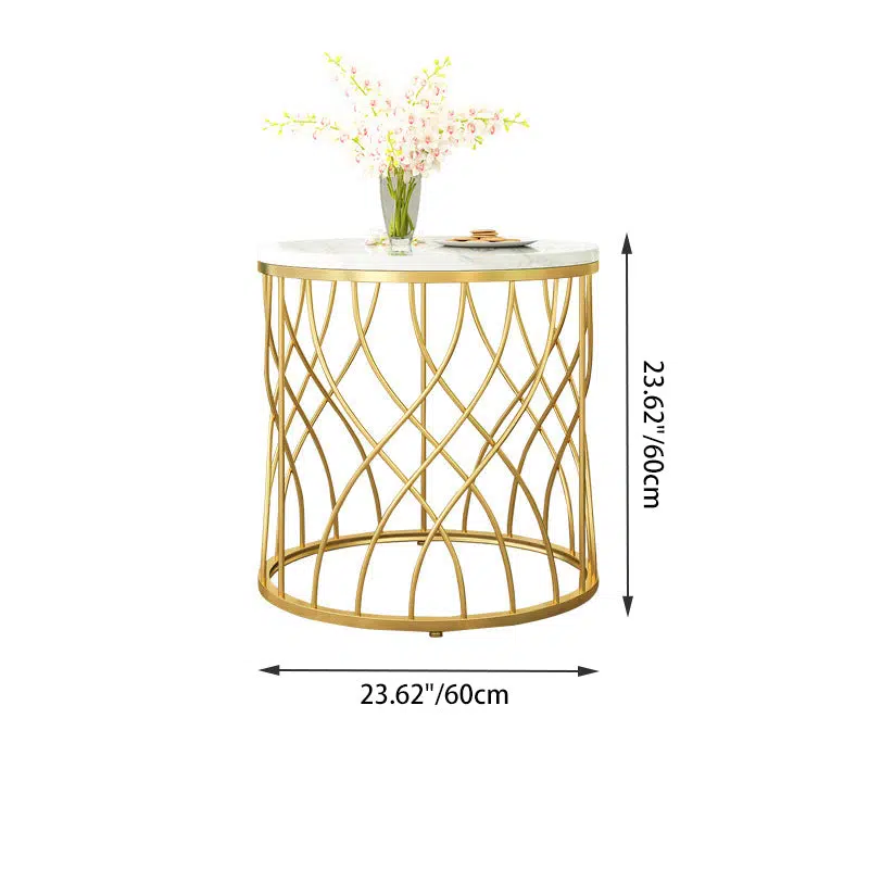 Contemporary Luxury Marble Round Top Metal Frame End Table For Living Room