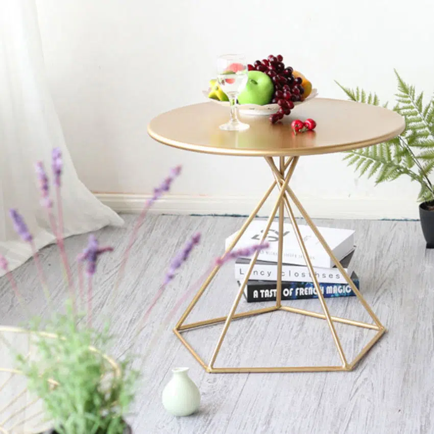Contemporary Luxury Metal Geometric Pentagram Base End Table For Living Room