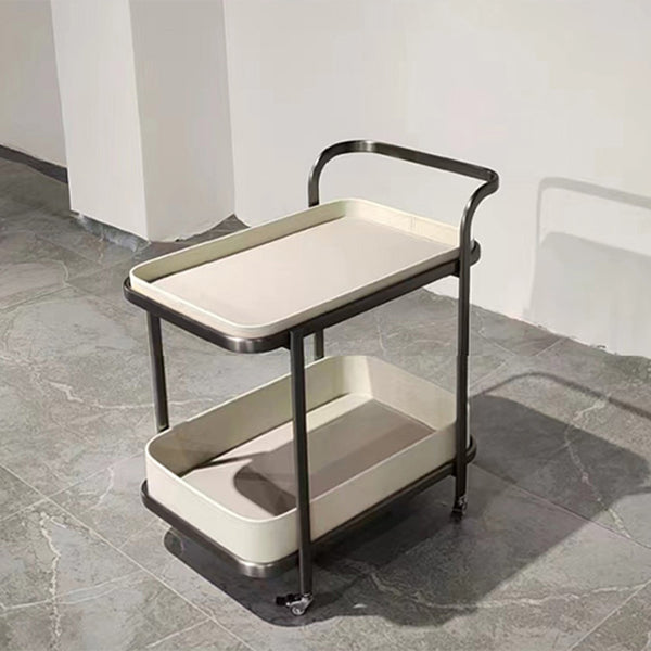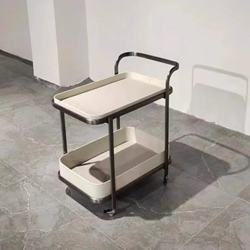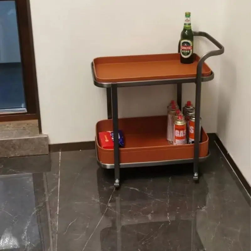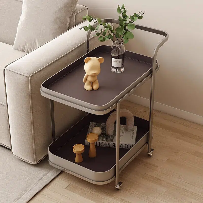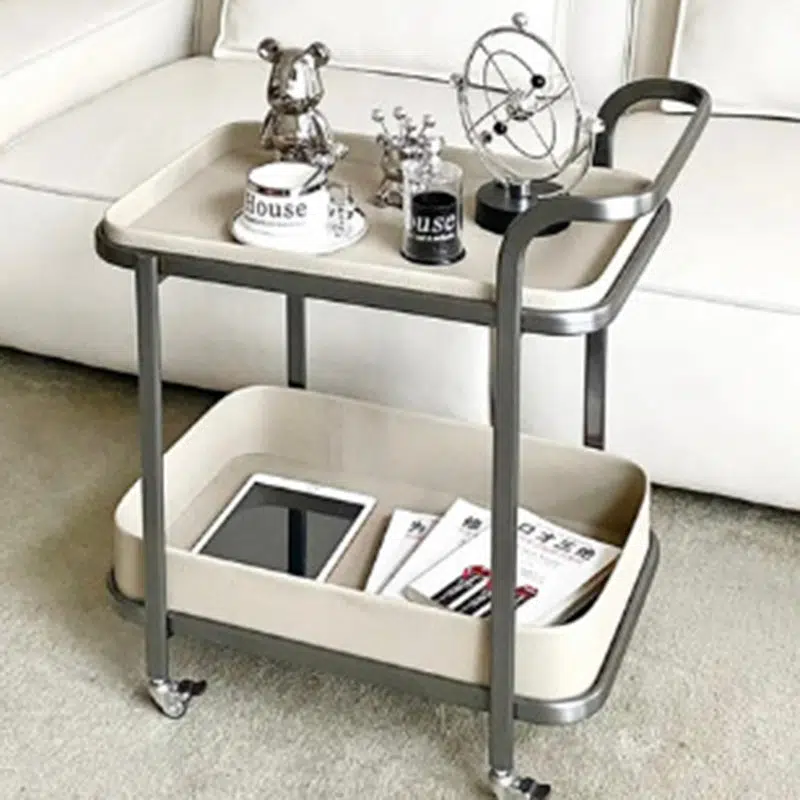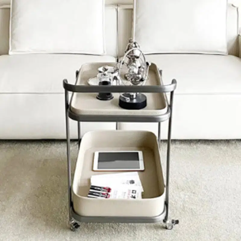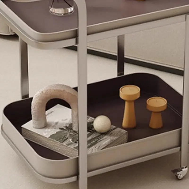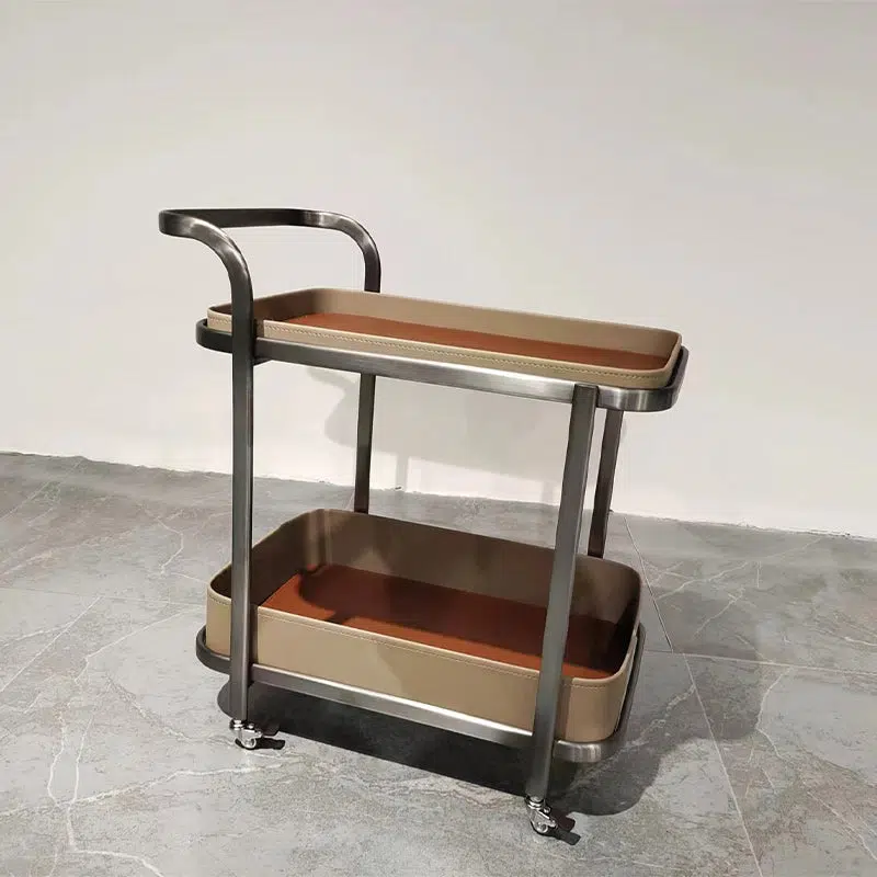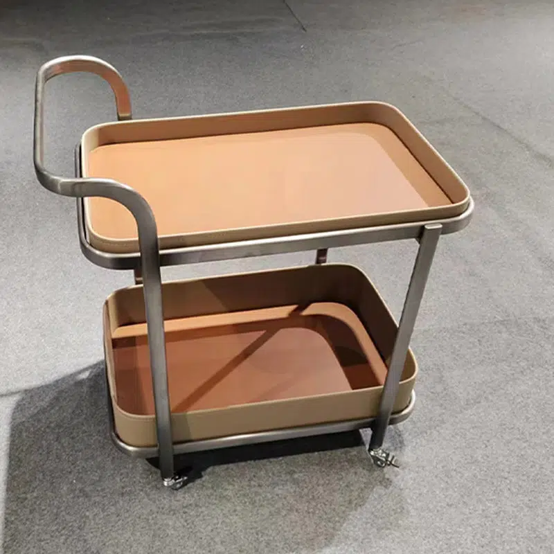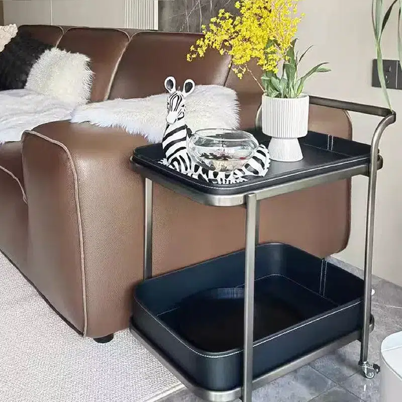 Contemporary Luxury Movable Rectangular Top Saddle Leather Stainless Steel End Table 2-Tier For Living Room