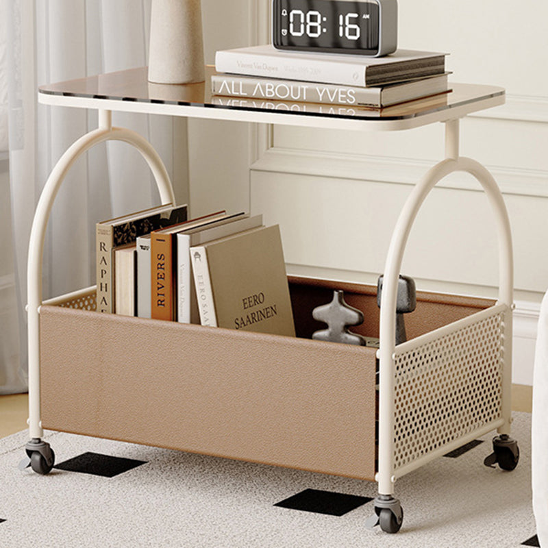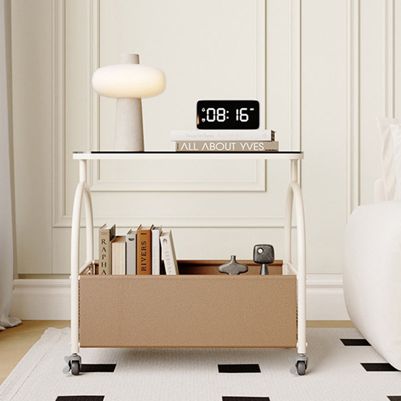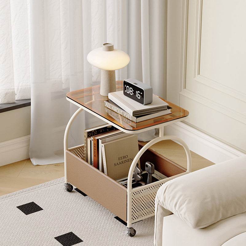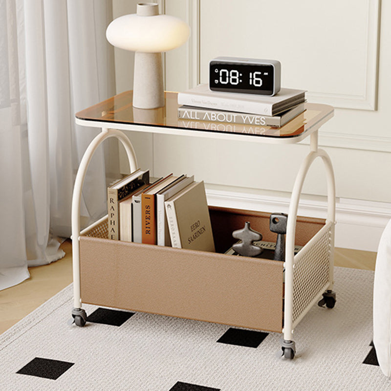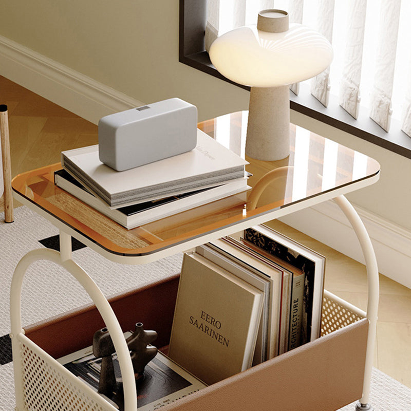 Contemporary Luxury Movable Rectangular Top Tempered Glass End Table 2-Tier For Living Room