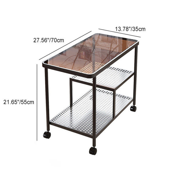Contemporary Luxury Movable Rectangular Top Tempered Glass Iron End Table 3-Tier For Living Room