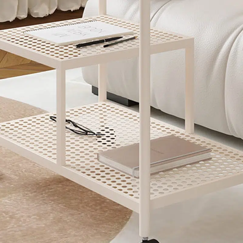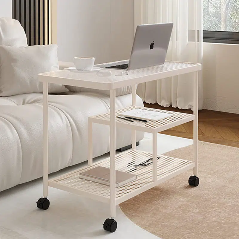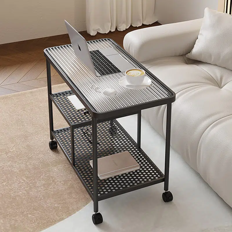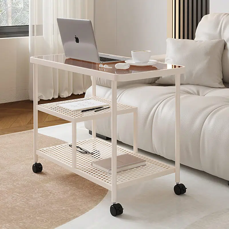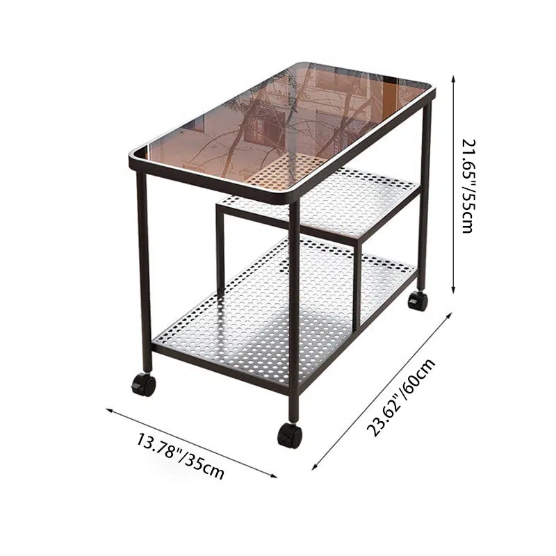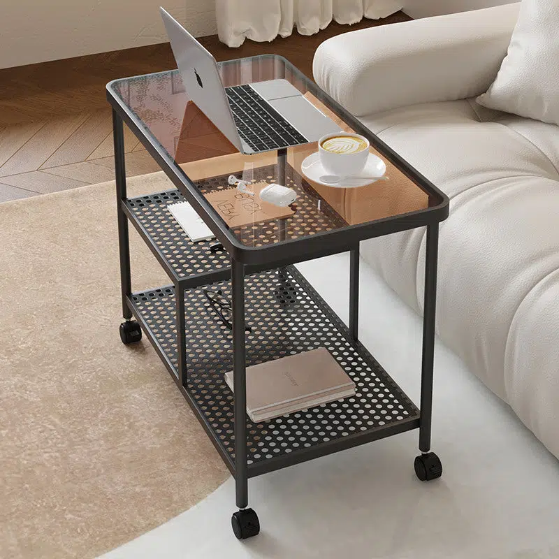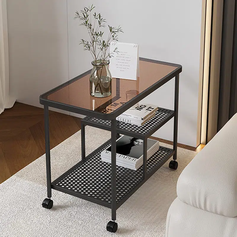 Contemporary Luxury Movable Rectangular Top Tempered Glass Iron End Table 3-Tier For Living Room