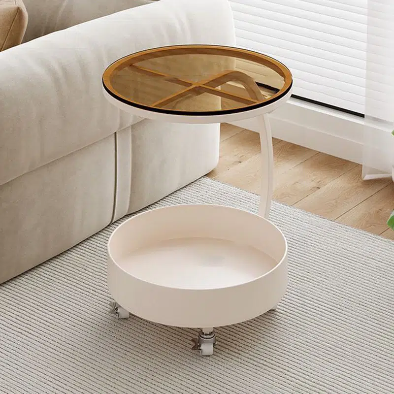 Contemporary Luxury Movable Round Top Tempered Glass Iron End Table 2-Tier For Living Room
