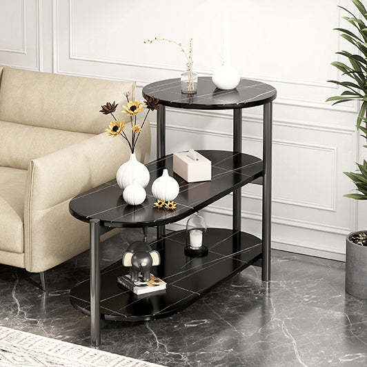 Contemporary Luxury Oval Iron Density Board End Table 3-Tier For Living Room