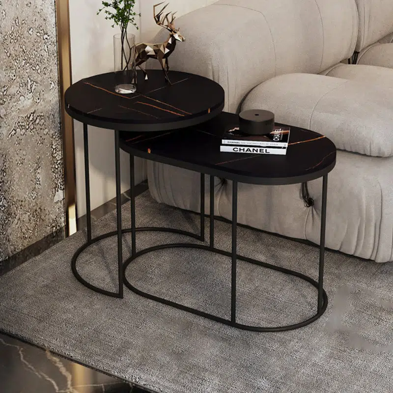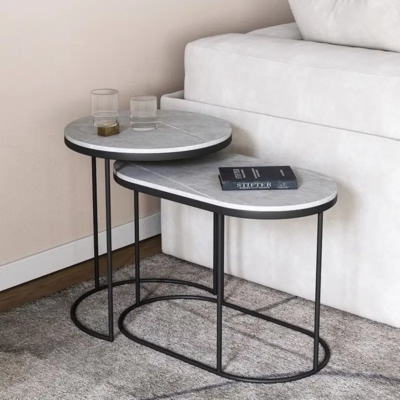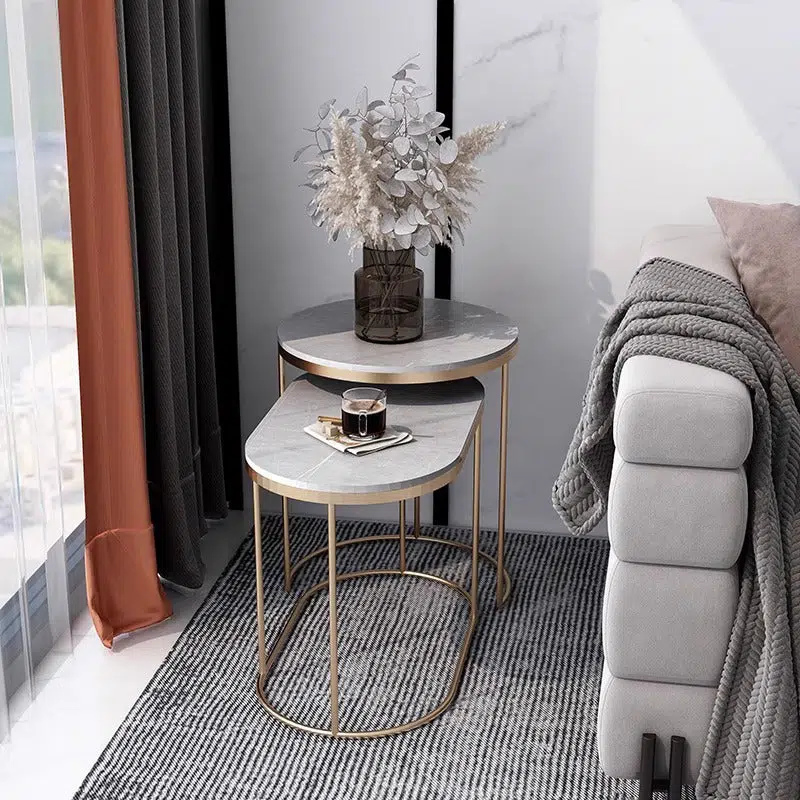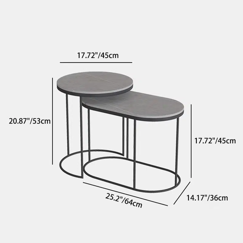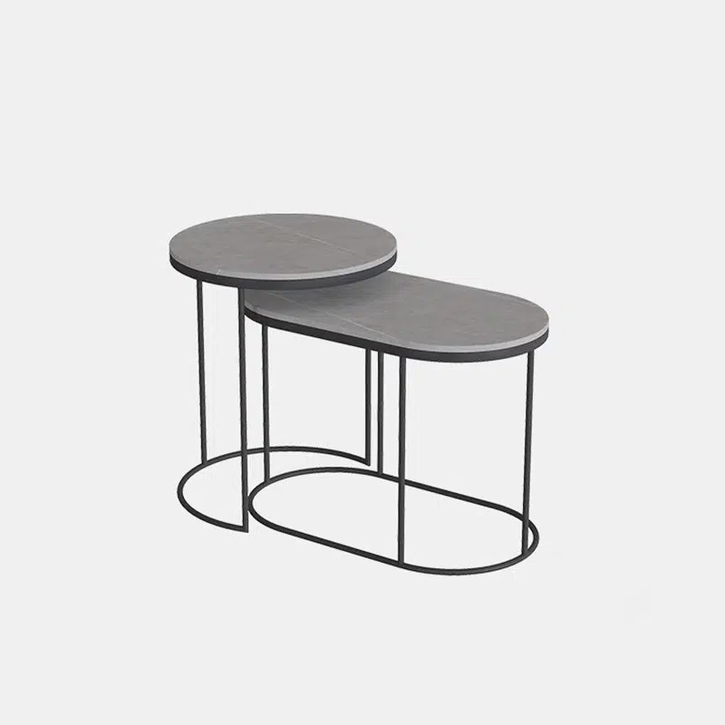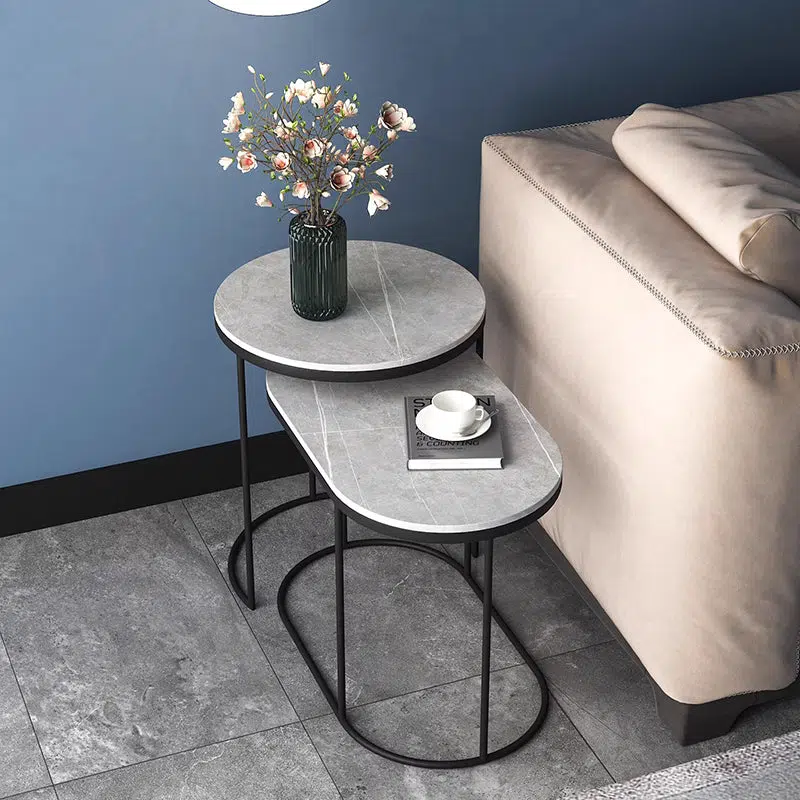 Contemporary Luxury Oval Sintered Stone Top Nesting End Table For Living Room
