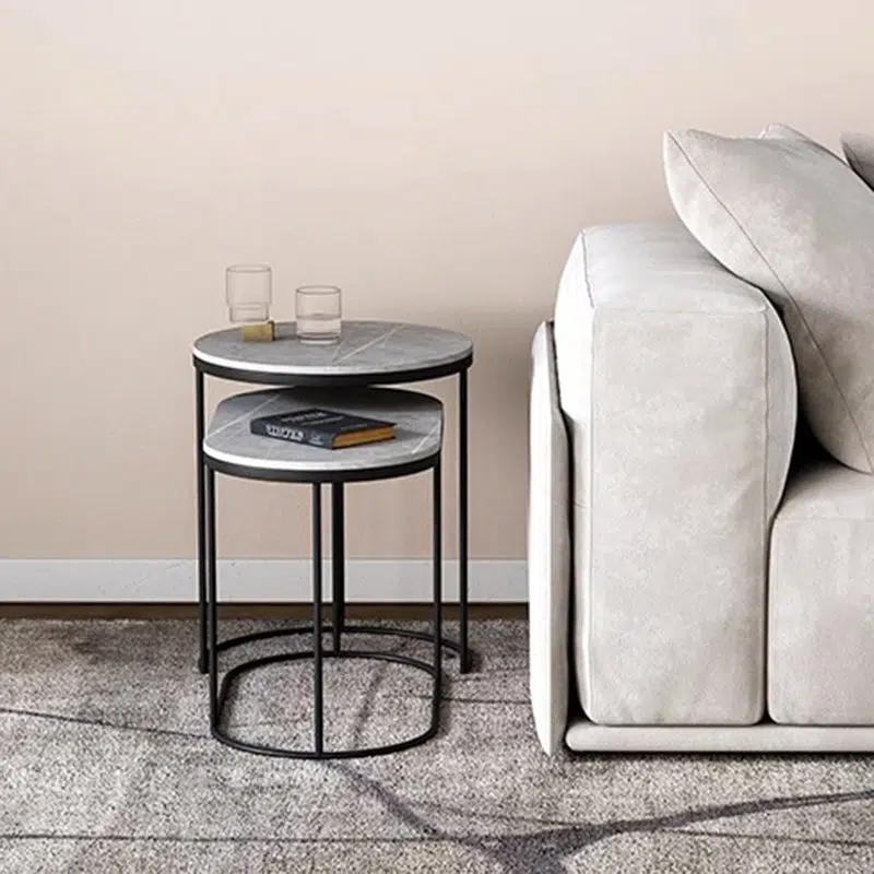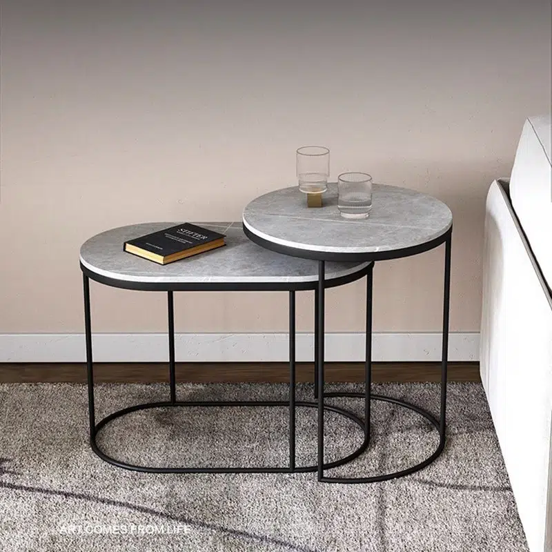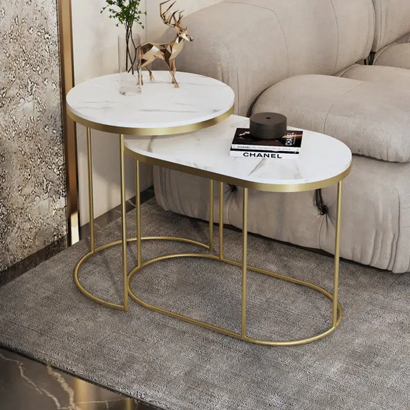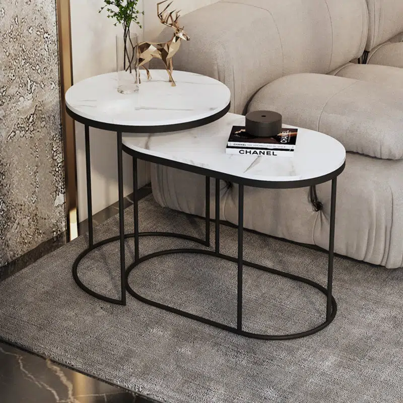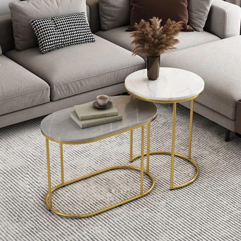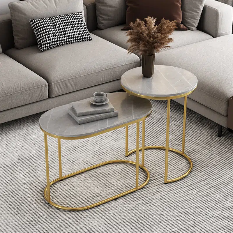Contemporary Luxury Oval Sintered Stone Top Nesting End Table For Living Room