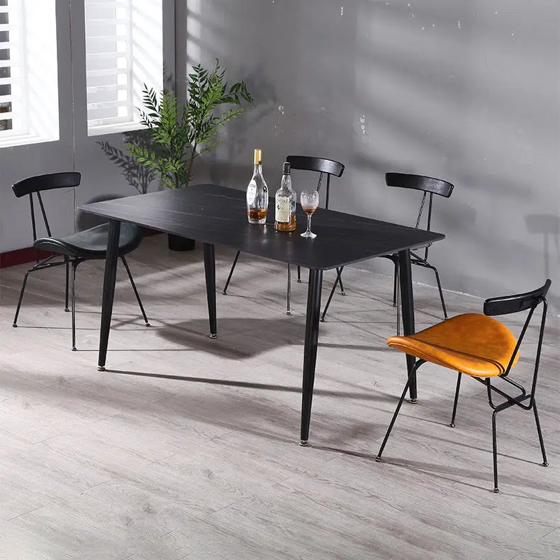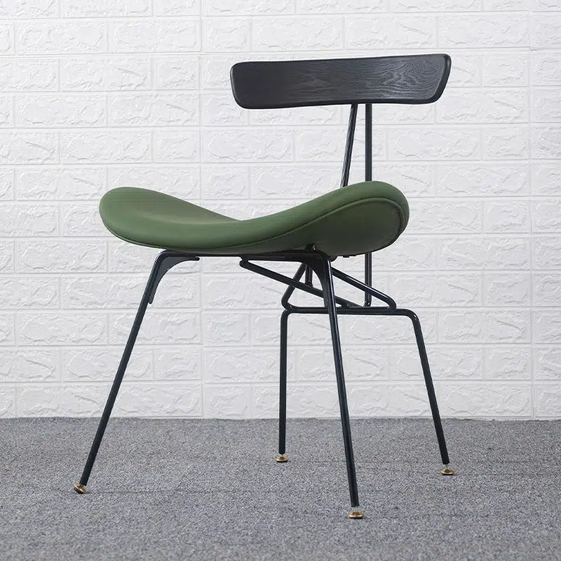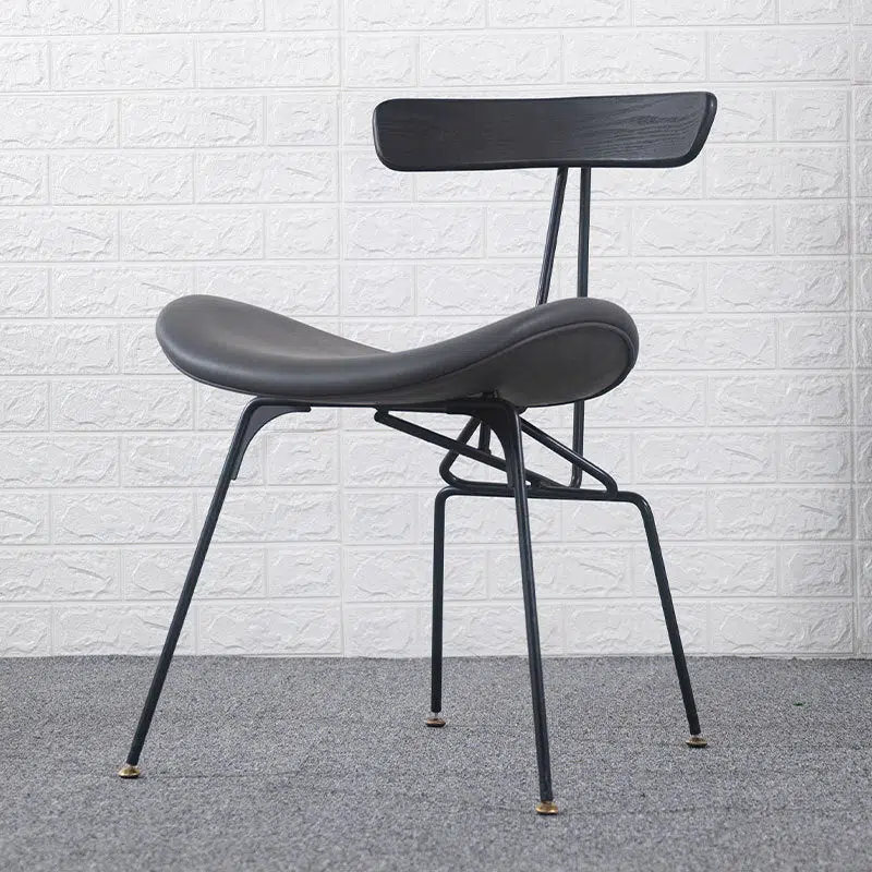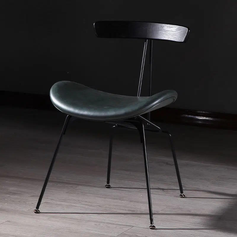 Contemporary Luxury PU Leather Upholstered Metal Legs Curved Dining Chair Backrest For Dining Room
