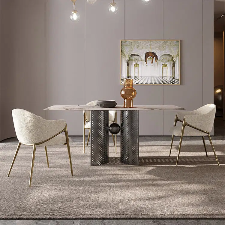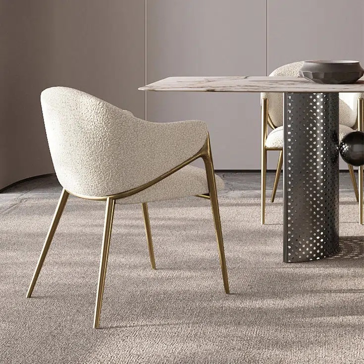 Contemporary Luxury Round Lambswool Stainless Steel Legs Dining Chair Backrest Armrest For Dining Room