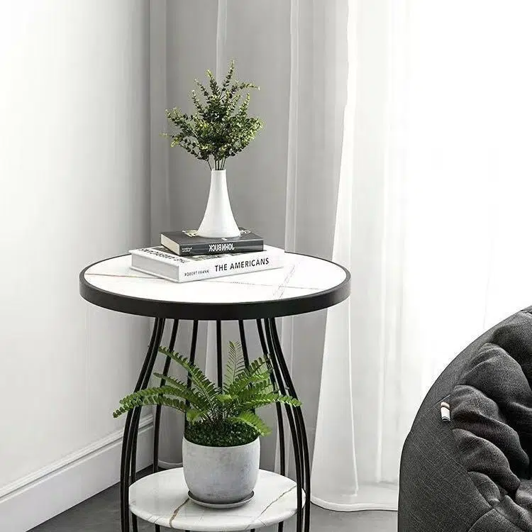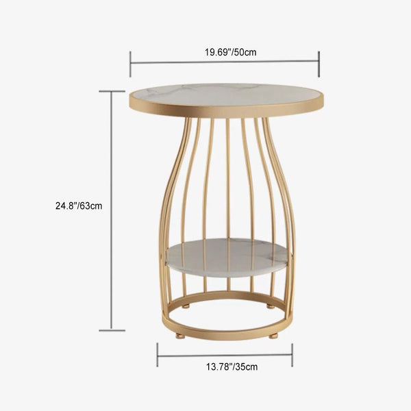 Contemporary Luxury Round Rock Slab Iron End Table 2-Tier For Living Room