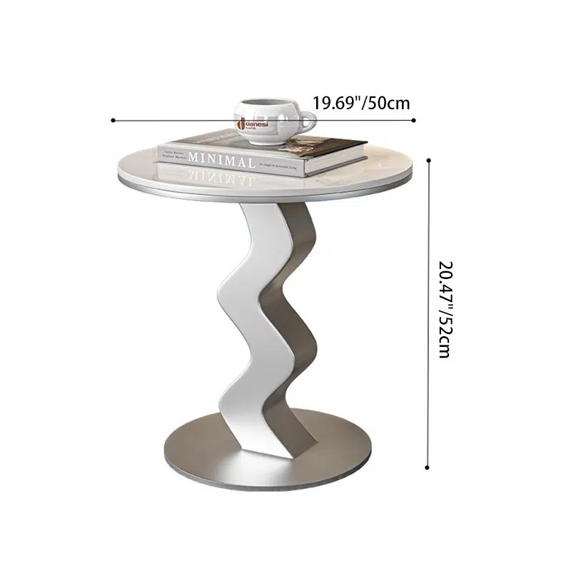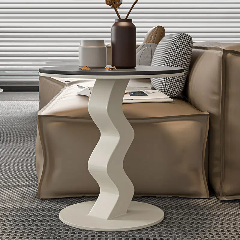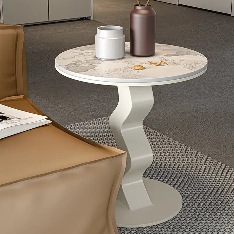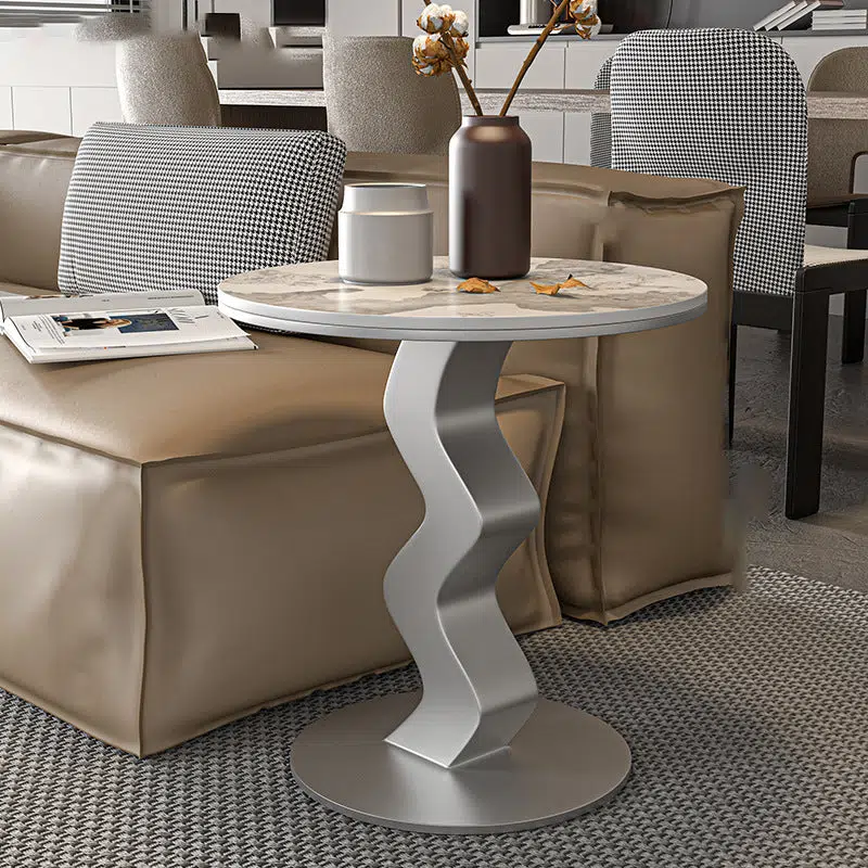 Contemporary Luxury Round Rock Slab Steel End Table 1-Tier For Living Room