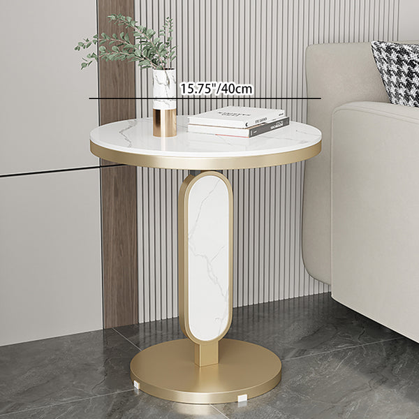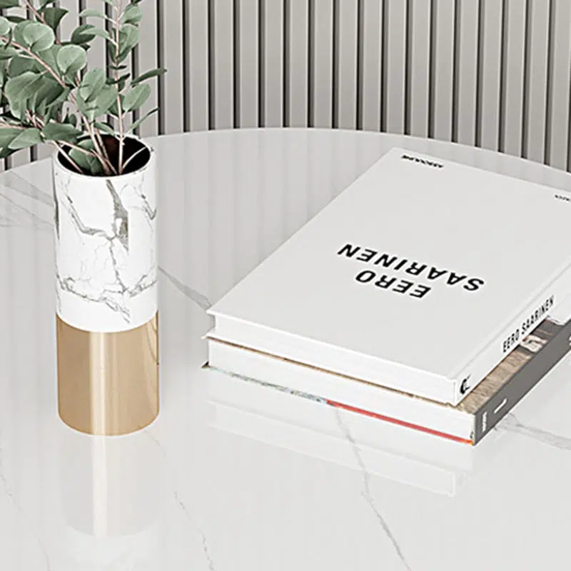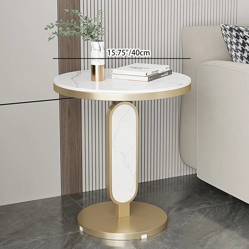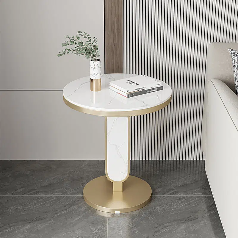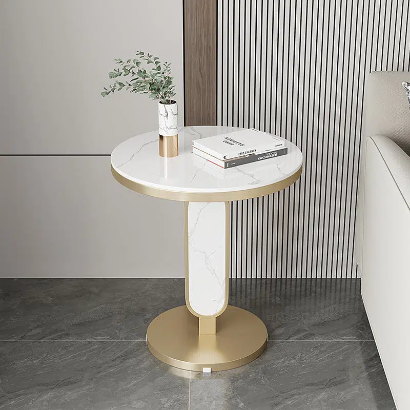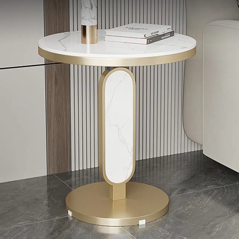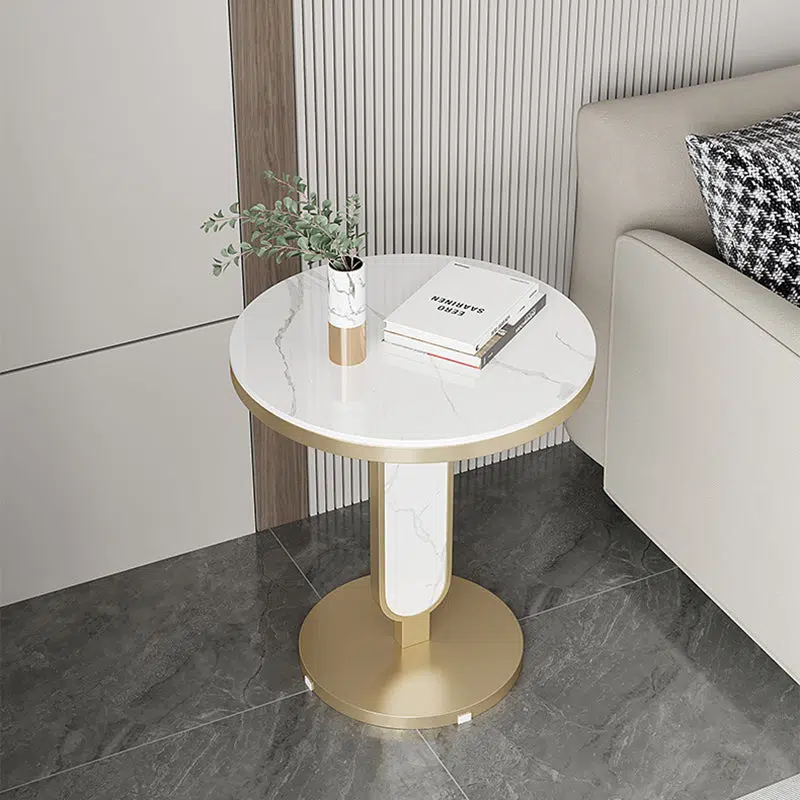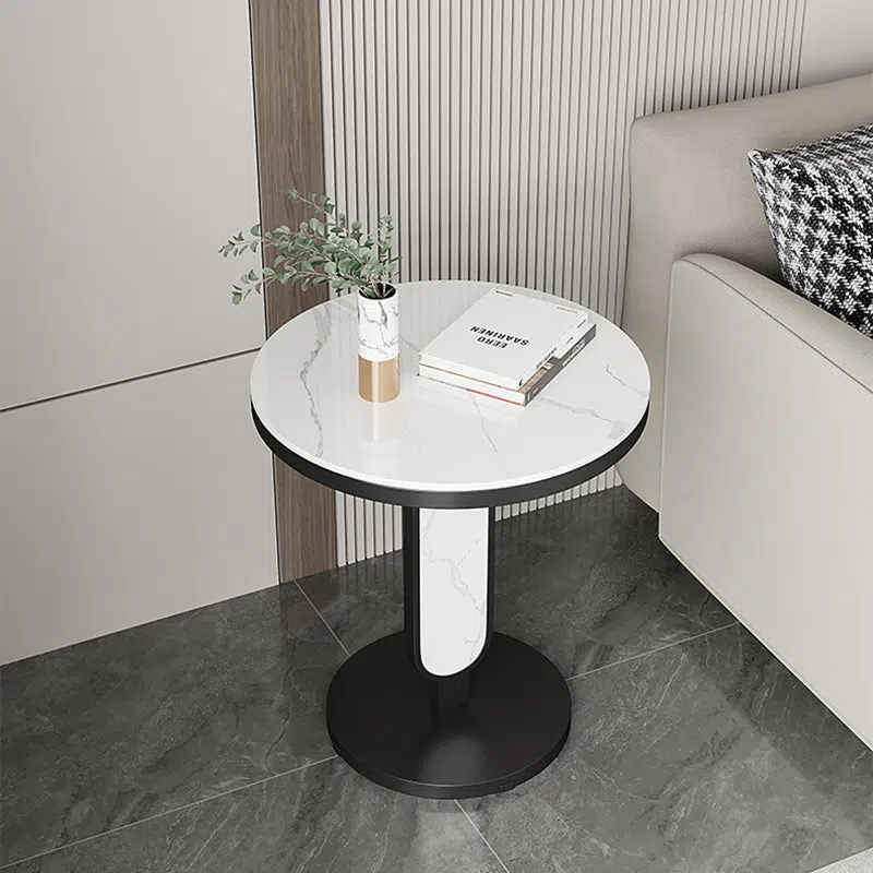 Contemporary Luxury Round Rock Slab Top Carbon Steel Coffee Table For Living Room