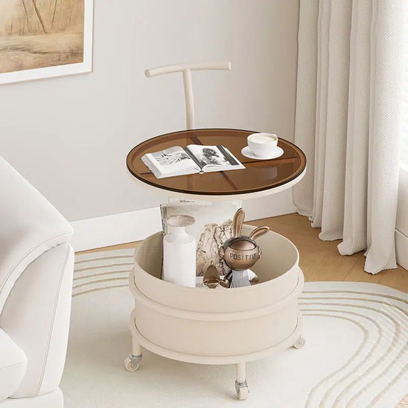 Contemporary Luxury Round Stainless Steel Glass End Table 2-Tier For Living Room