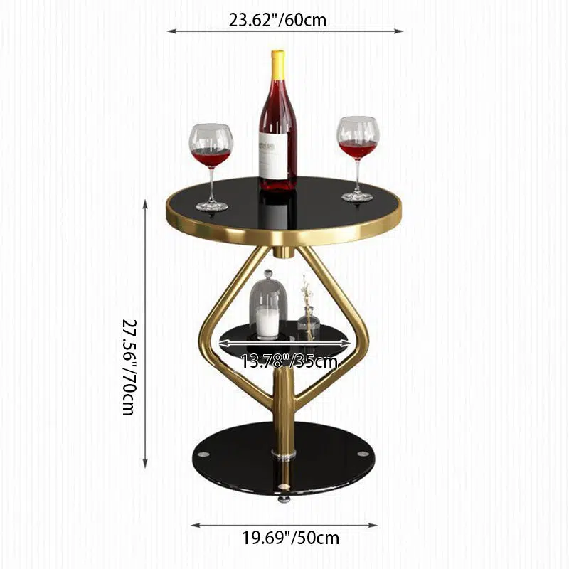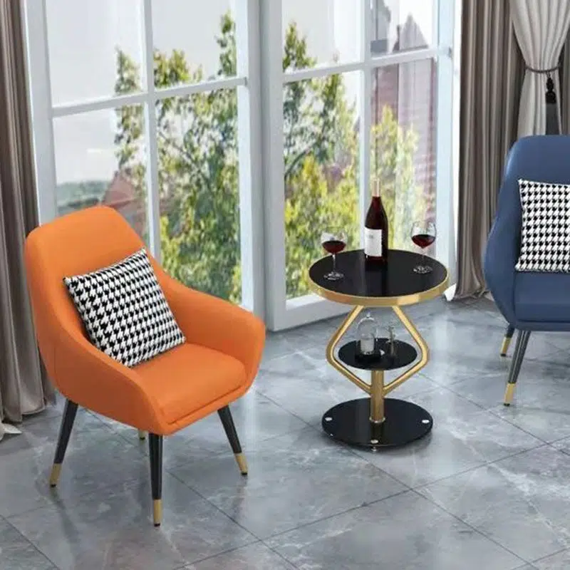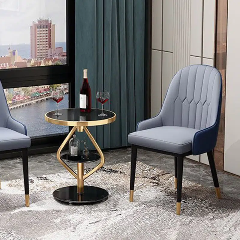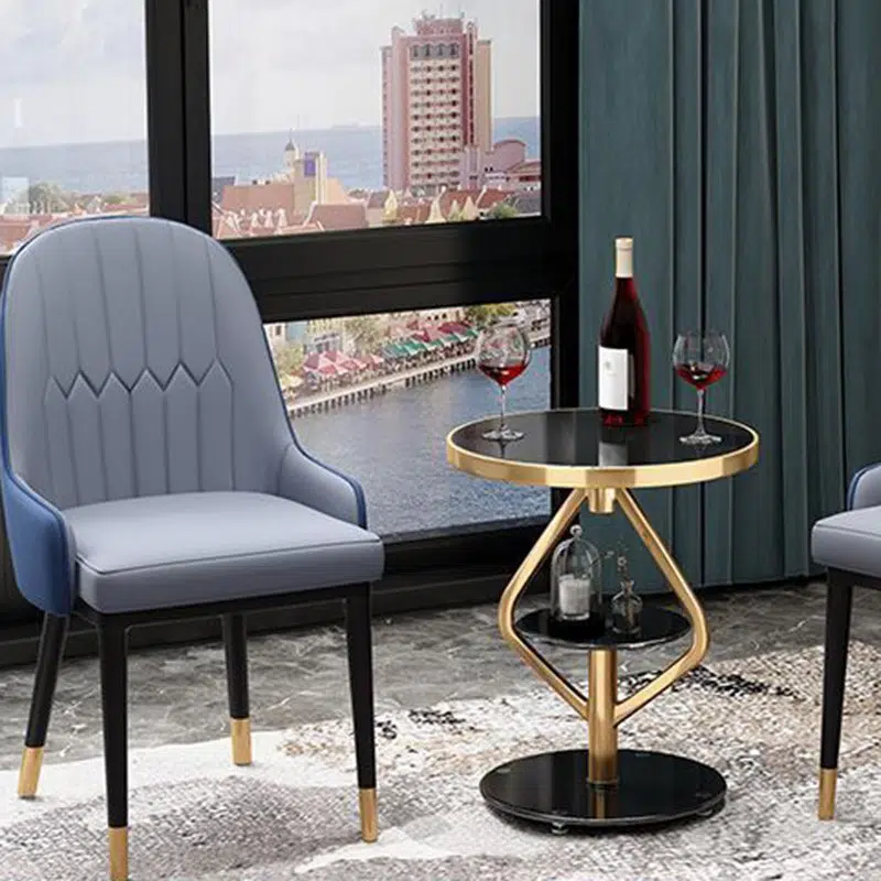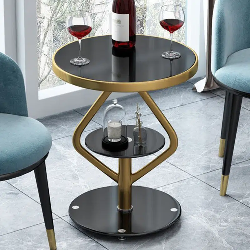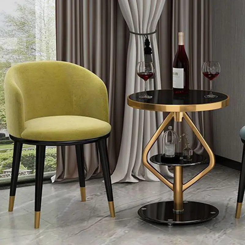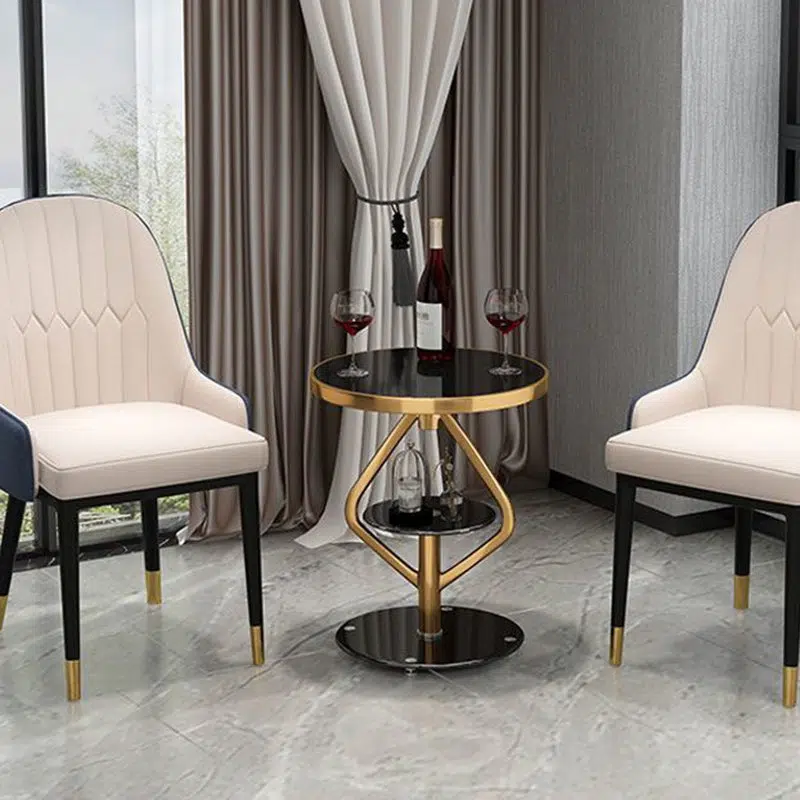 Contemporary Luxury Round Tempered Glass Stainless Steel Coffee Table 1-Tier For Living Room