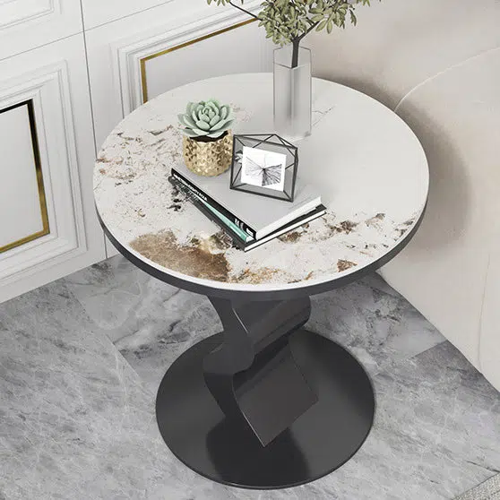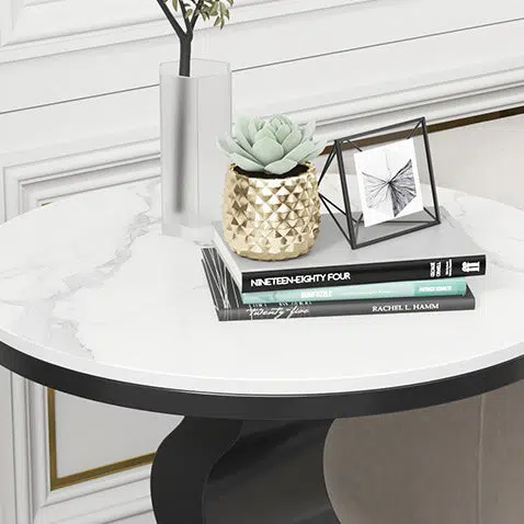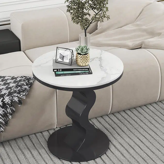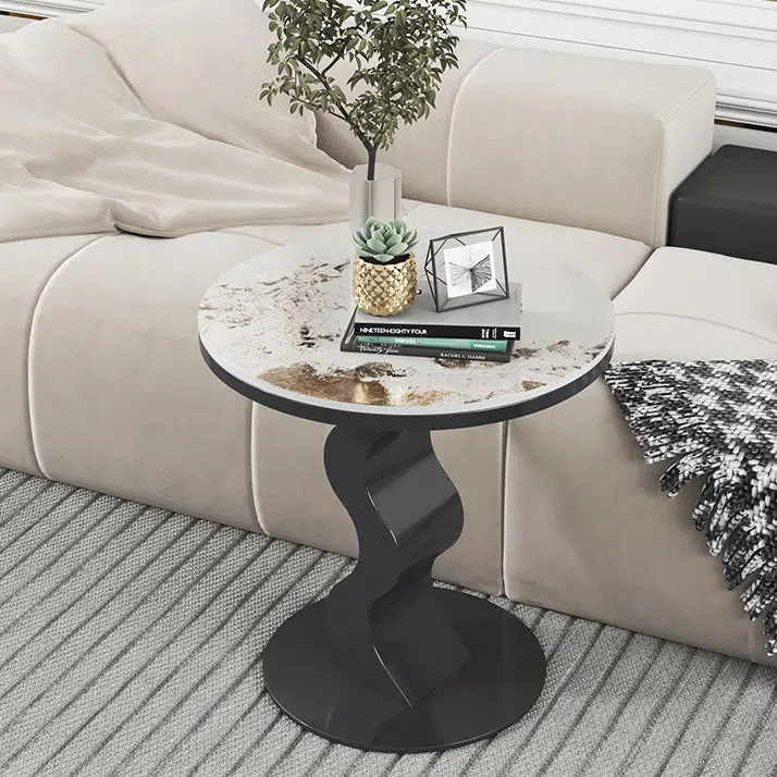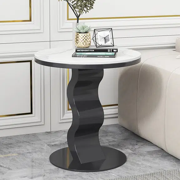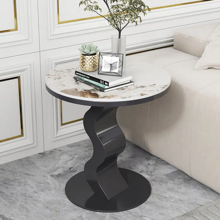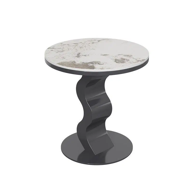 Contemporary Luxury Sintered Stone Top Corrugated Base Coffee Table For Living Room